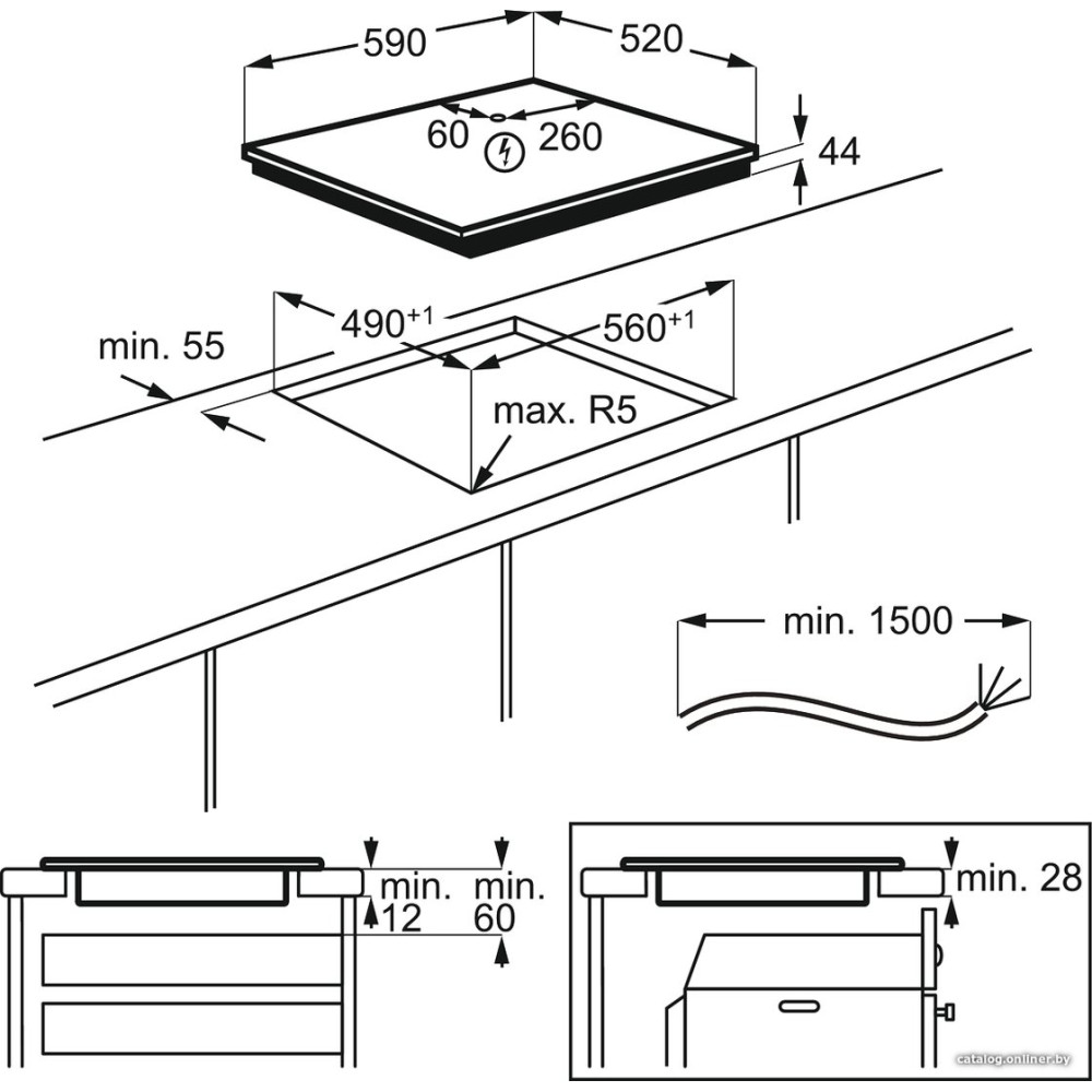 индукционная на 4 конфорки, cтеклокерамика, мощность: 7200 Вт, независимая установка, размеры (ШхГ): 59x52 см