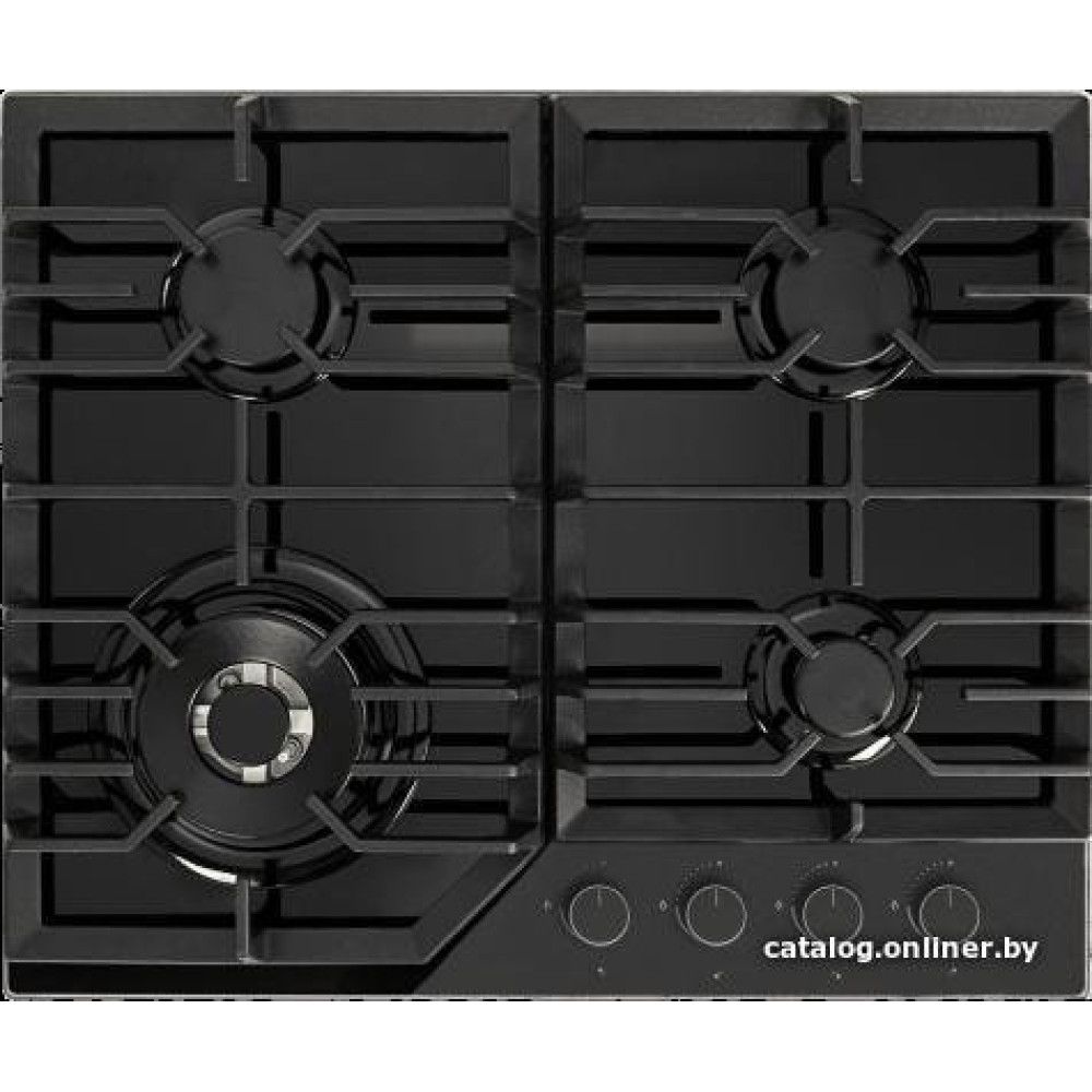 газовая на 4 конфорки, закаленное стекло, автоматический электроподжиг, газ-контроль, решетки: чугун, независимая установка, размеры (ШхГ): 61x51 см