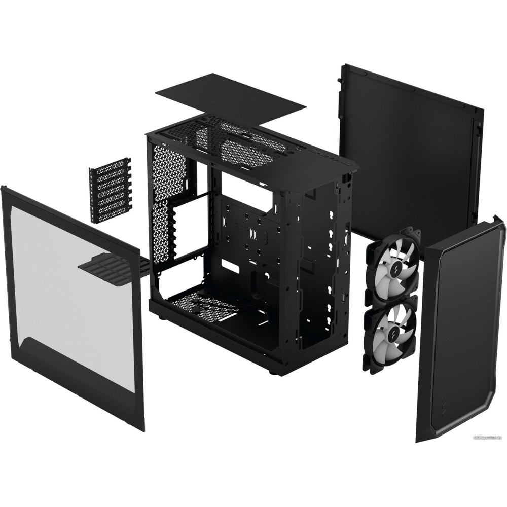 - Меткис вентиляторами в комплекте, с поддержкой СЖО 240 мм, с поддержкой СЖО 360 мм, с пылевыми фильтрами, с закаленным стеклом, продуваемый
