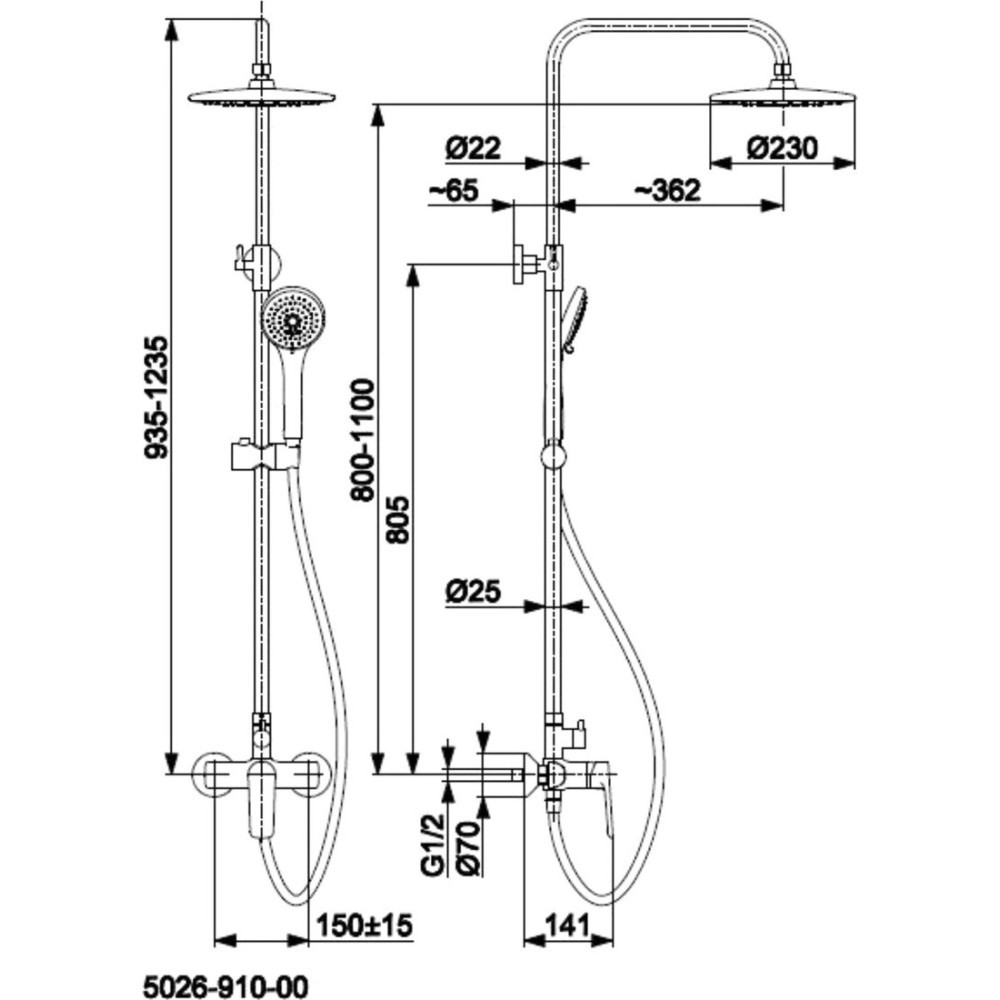 душевая система (с верхним душем), настенный монтаж, механический смеситель, верхний душ 230 мм, ручной душ