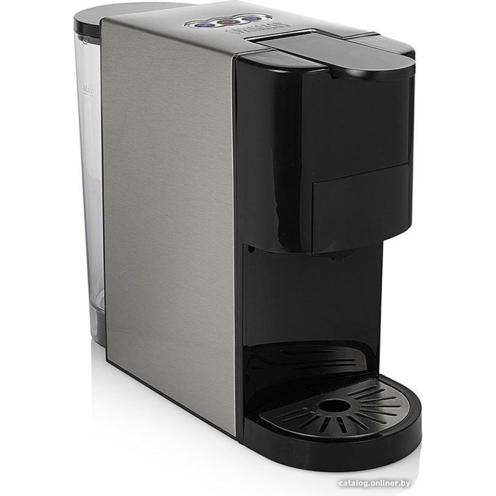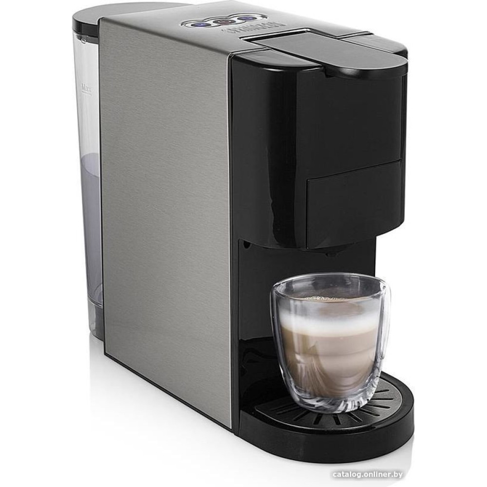 1450 Вт, корпус металл, используемый кофе: молотый/чалды/капсулы Nespresso Original/Dolce Gusto, цвет серебристый