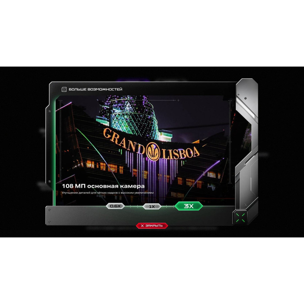 - Количество точек матрицы основной камеры108 Мп