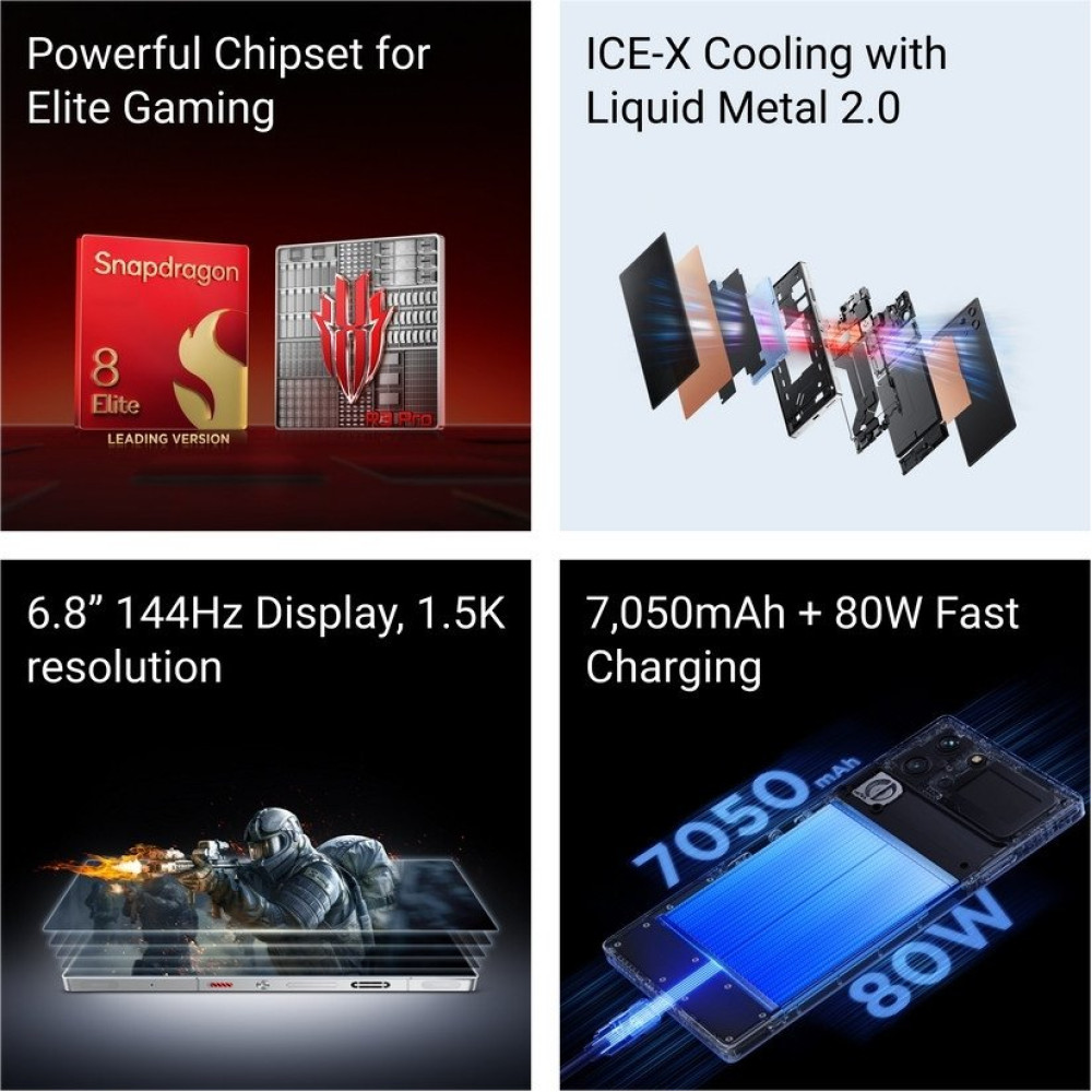 Android, экран 6.85" AMOLED (1216x2688) 144 Гц, Qualcomm Snapdragon 8 Elite Leading Version, ОЗУ 16 ГБ, память 512 ГБ, камера 50 Мп, аккумулятор 7050 мАч, моноблок, влагозащита IP54
