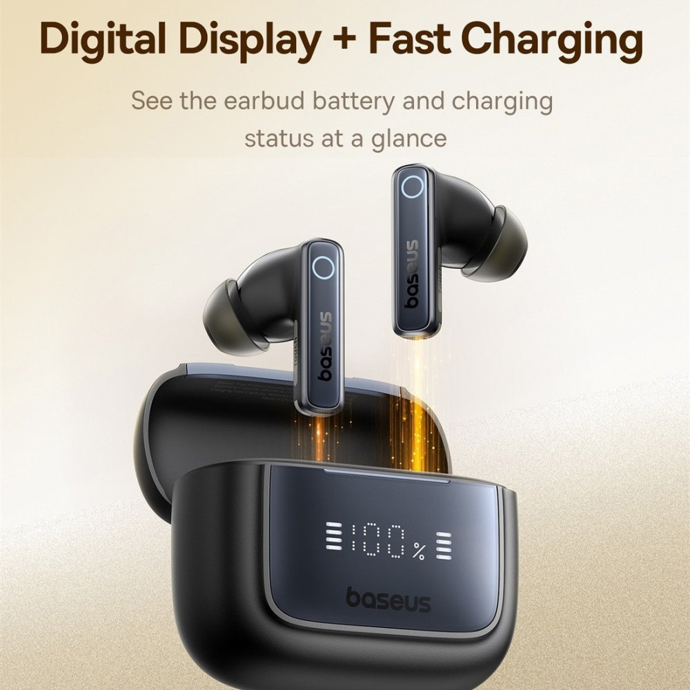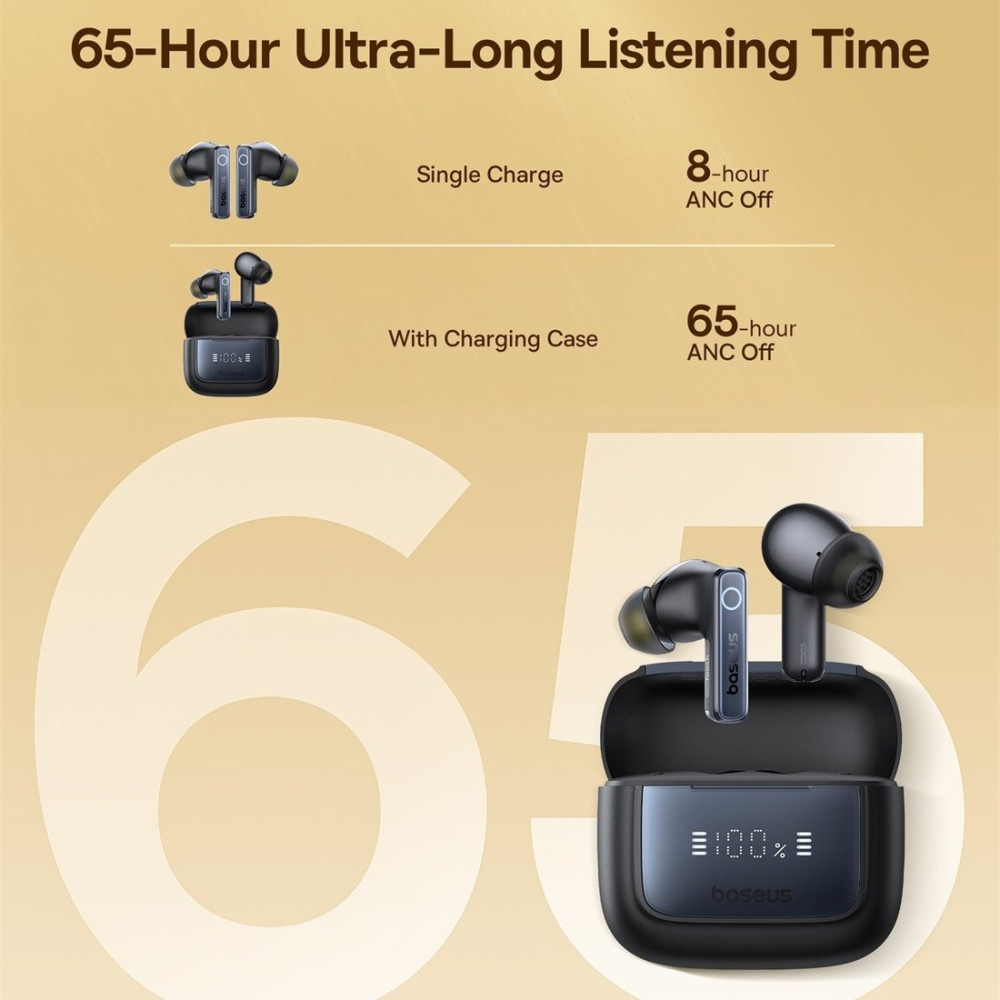беспроводные наушники с микрофоном, внутриканальные, портативные, полностью беспроводные (TWS), Bluetooth 5.3, 20-20000 Гц, быстрая зарядка, время работы 8 ч, с кейсом 65 ч, активное шумоподавление