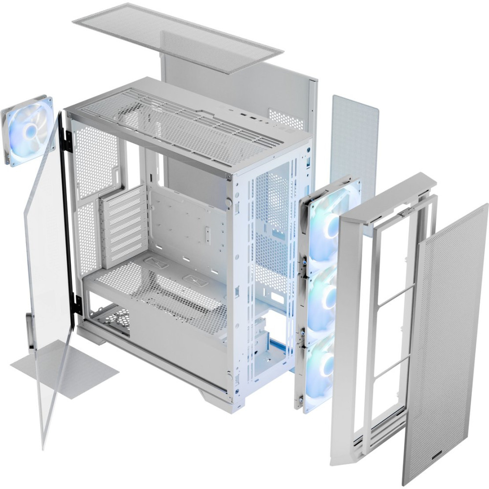 Mid Tower, БП отсутствует, для плат ATX/micro-ATX/mini-ITX/eATX, с 4 вентиляторами в комплекте, с контроллером вращения, окно: закаленное стекло, видеокарта до 400 мм, охлаждение ЦП до 173 мм, пылевой фильтр - сверху/спереди/снизу/сбоку (на одной из стенок), 2xUSB-A 3.2 5Гбит/с, цвет белый