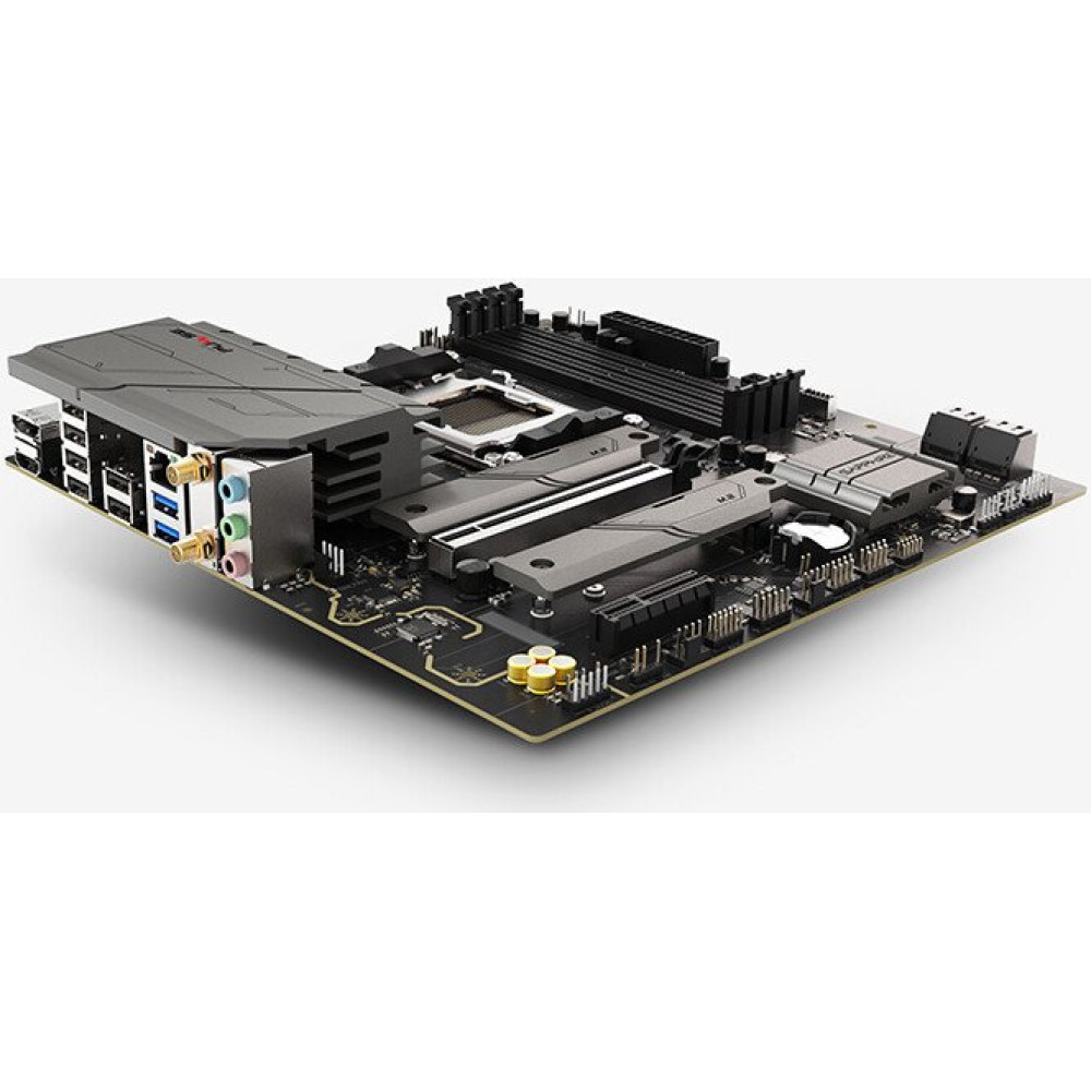 mATX, чипсет AMD B850, память 4xDDR5, слоты: 1xPCIe x16 4.0, 2xM.2, 802.11ax (Wi-Fi 6)+Bluetooth 5.3, 7+2+1 фаз питания