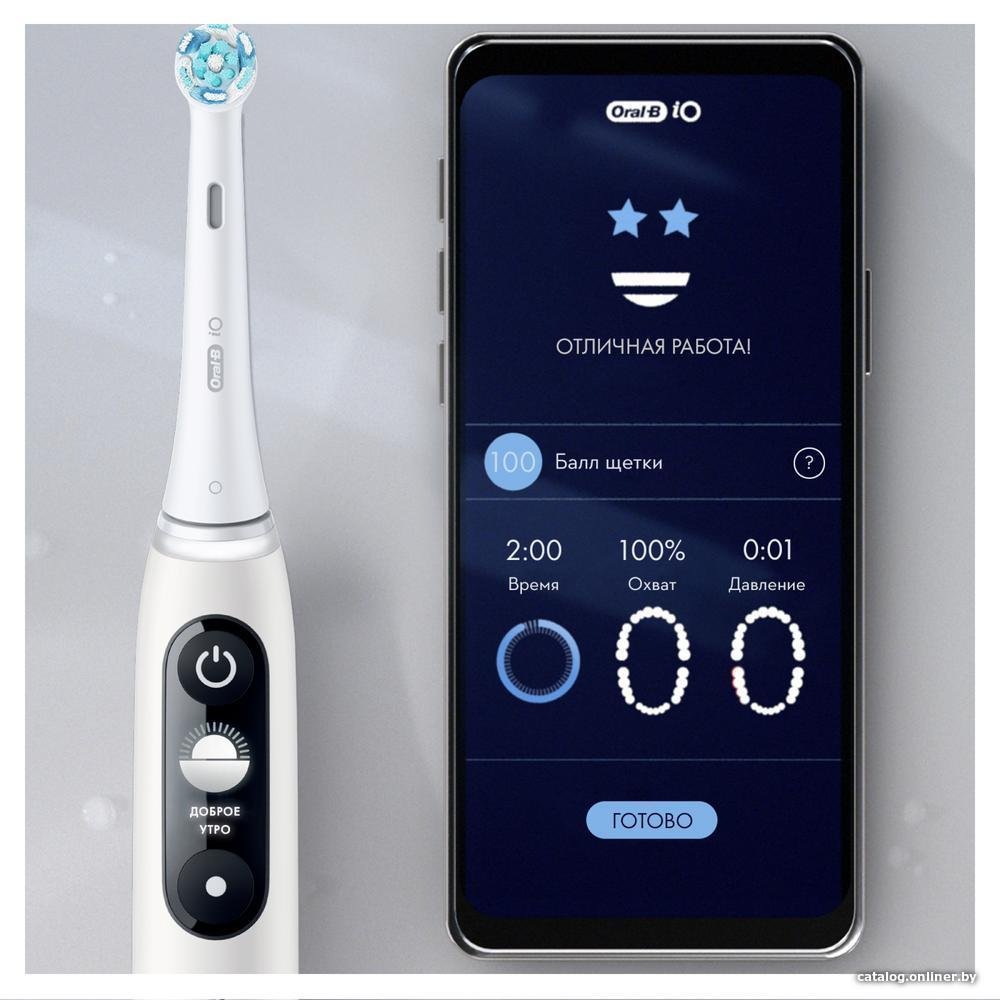 зубная щетка, мягкая чистка/глубокая чистка/отбеливание/массаж, питание от аккумулятора, движение головки: вращение + пульсация, дисплей, поддержка мобильного приложения, в комплекте: футляр, подставка-зарядная база, количество насадок: 1