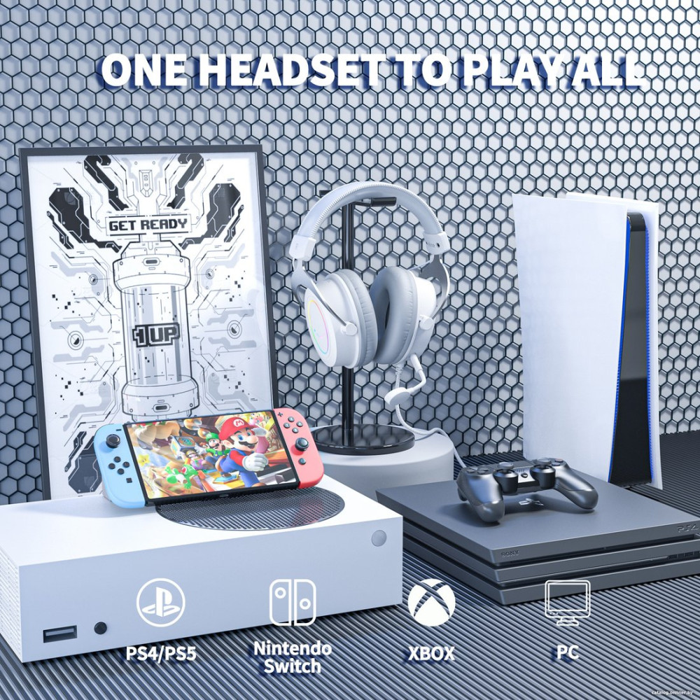 наушники с микрофоном, мониторные (охватывающие), геймерские, 20-20000 Гц, кабель 2 м