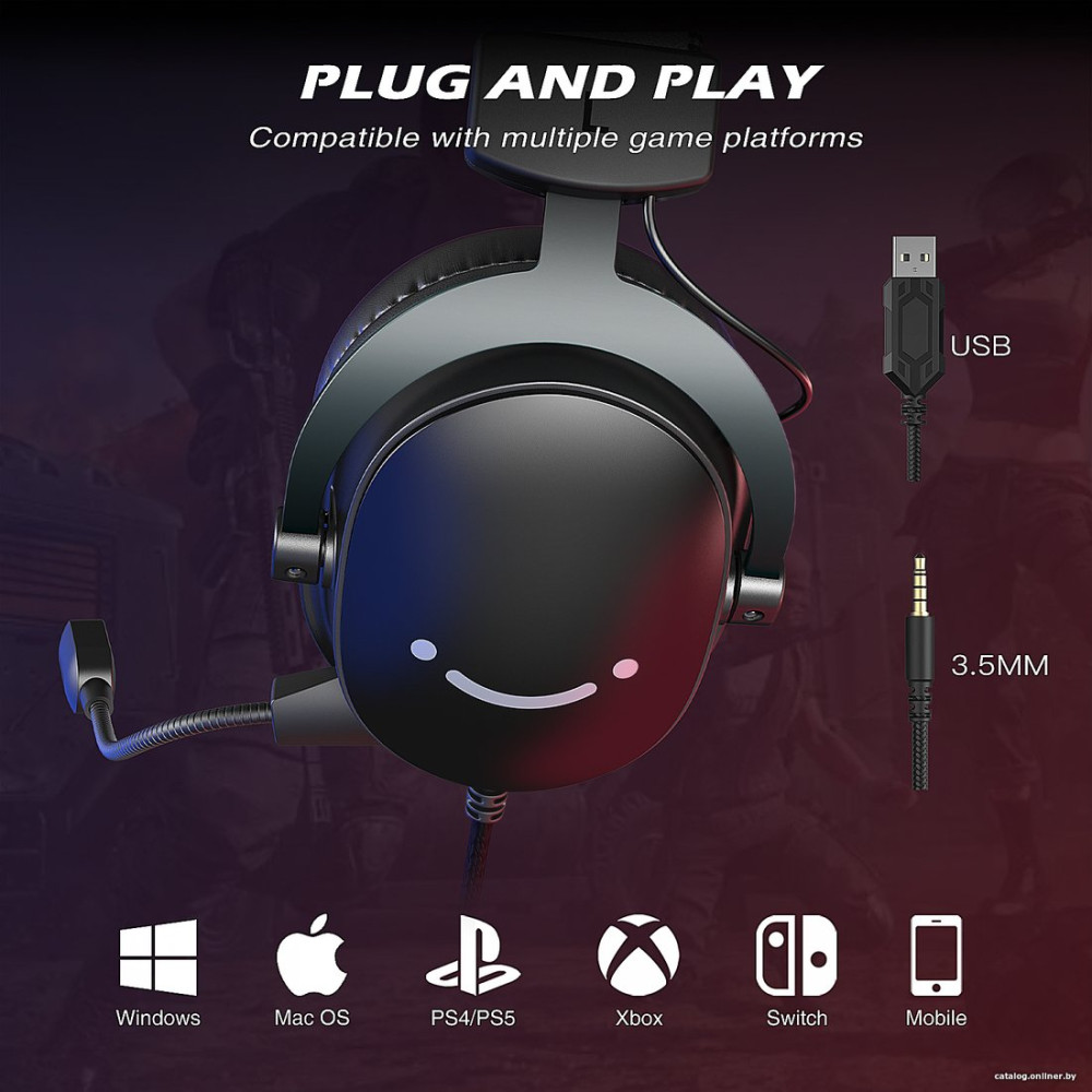 - Меткис микрофоном (гарнитура), игровые, полноразмерные, для компьютера