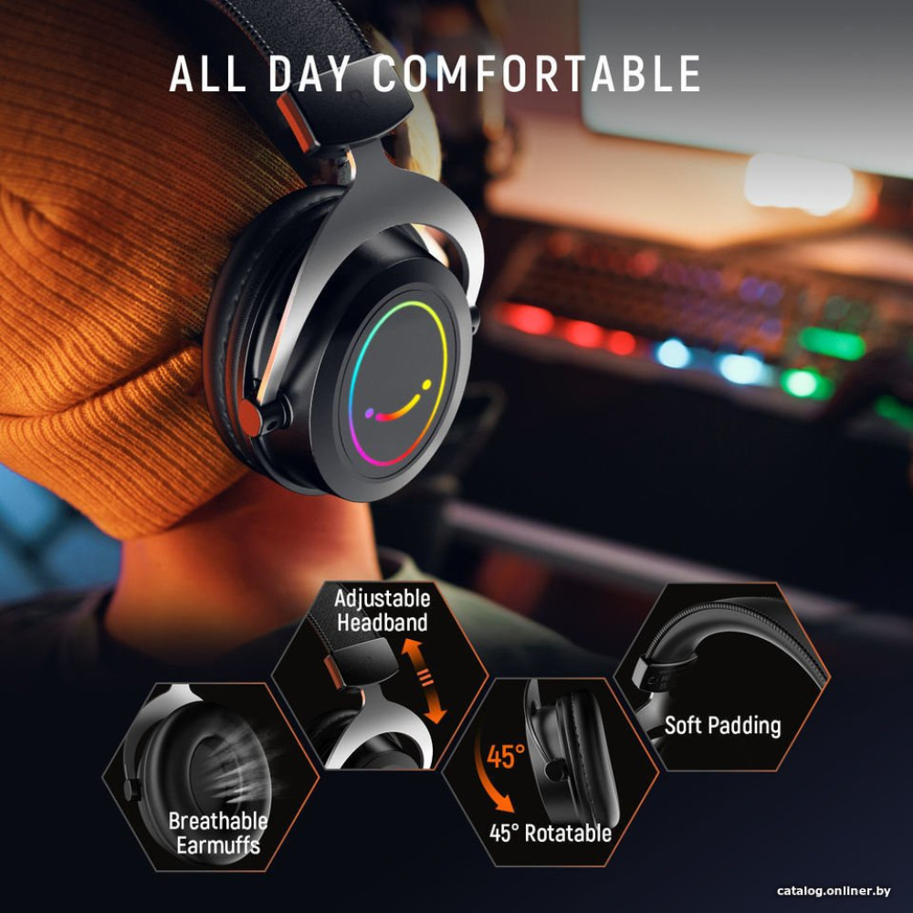 наушники с микрофоном, мониторные (охватывающие), геймерские, 20-20000 Гц, кабель 2 м