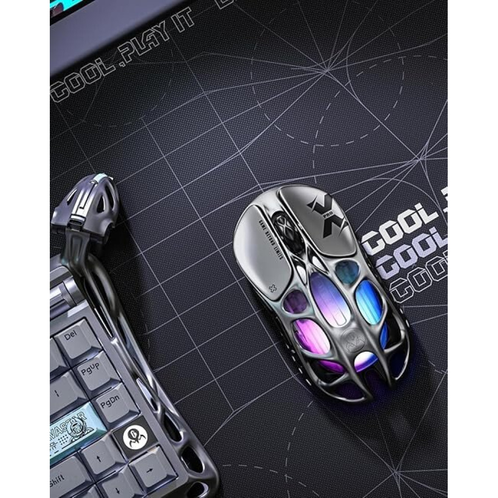 полноразмерная игровая мышь, проводная USB Type-C/беспроводная Bluetooth/беспроводная радио, сенсор оптический 32000 dpi, 6 кнопок, колесо с нажатием, цвет черный