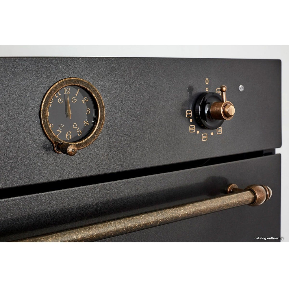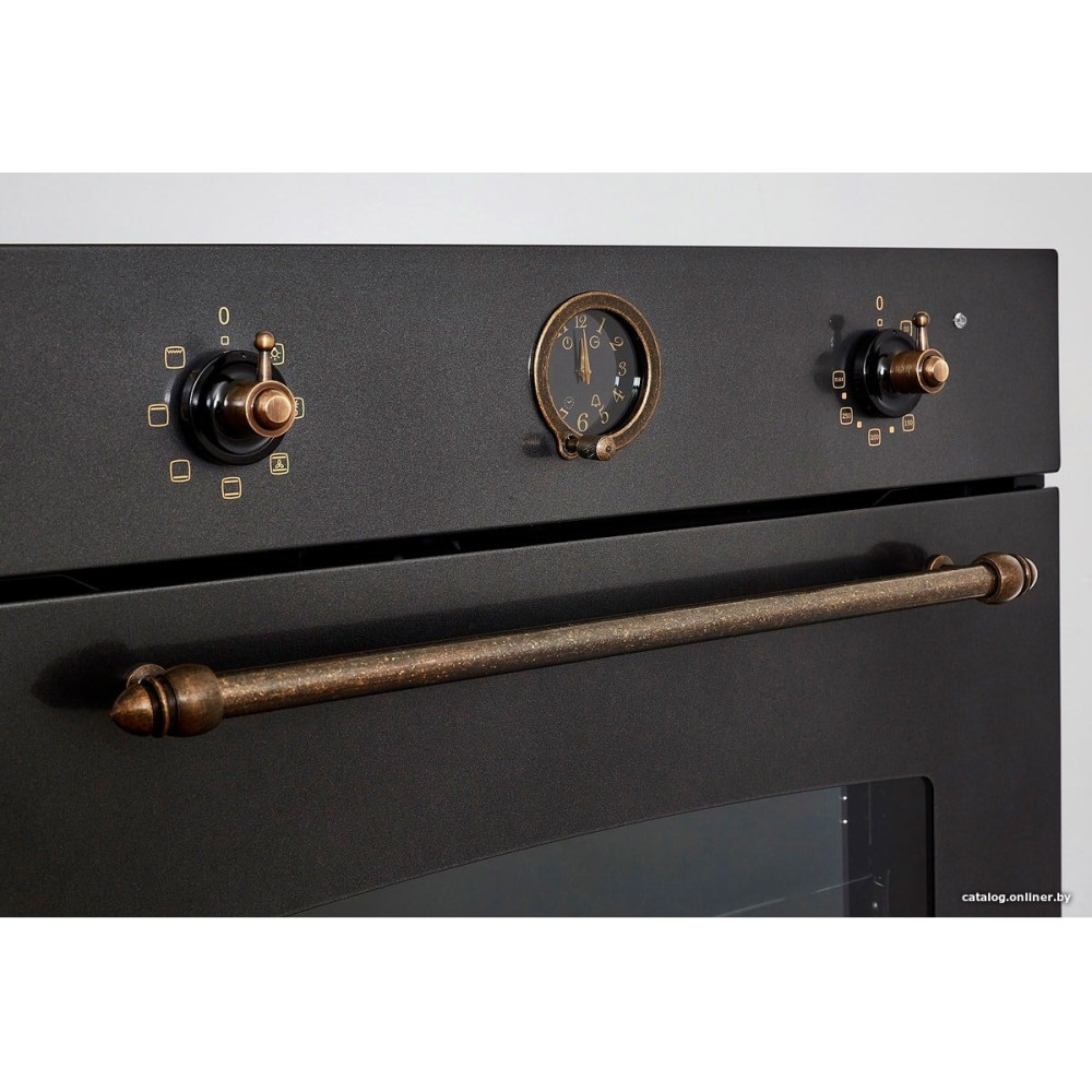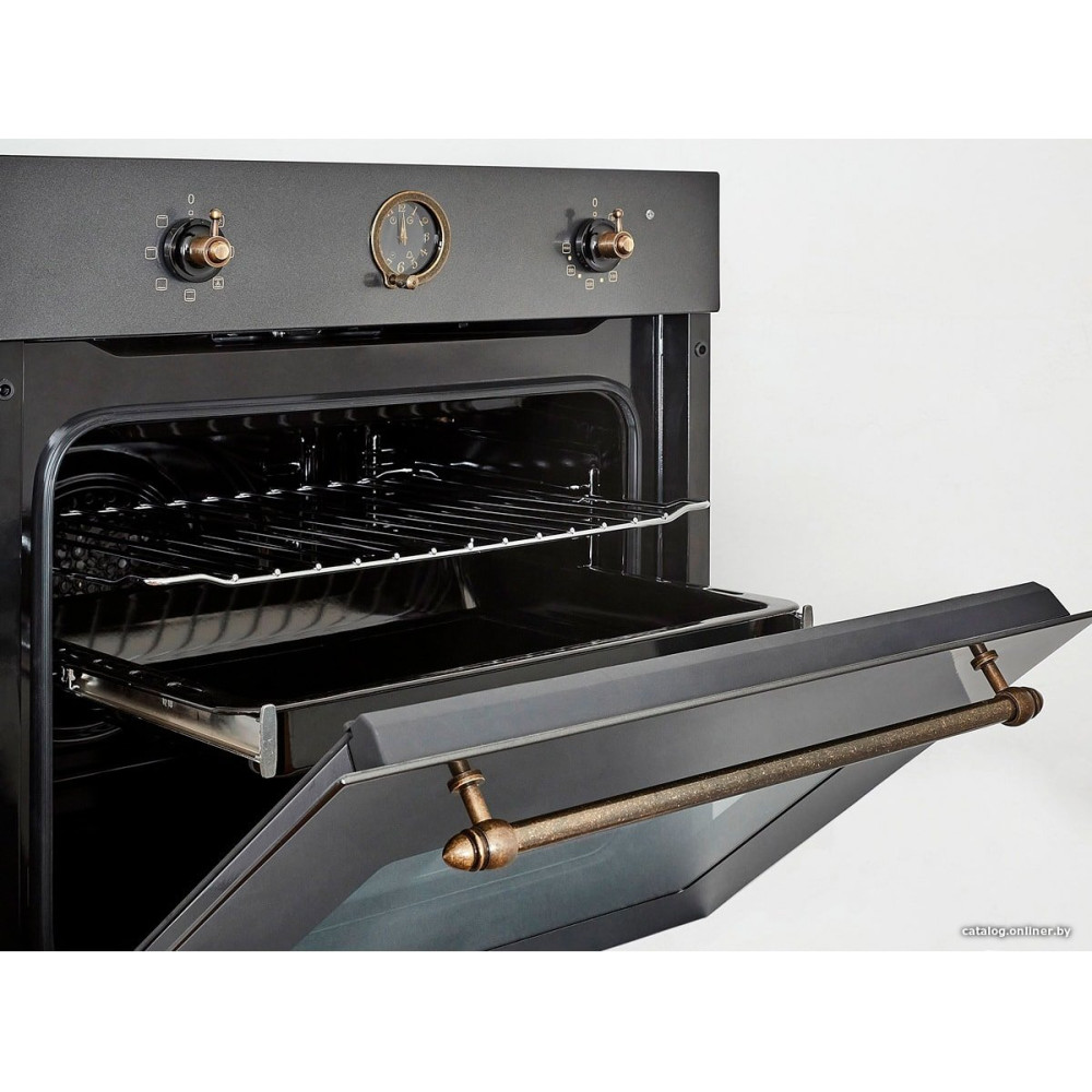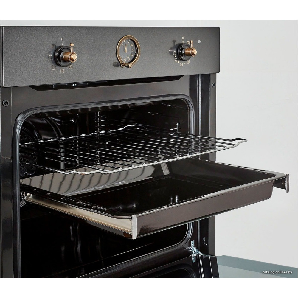 электрический с конвекцией, объем 64 л, ретродизайн, 6 режимов, очистка каталитическая, 2 стекла в дверце, направляющие проволочные + телескопические