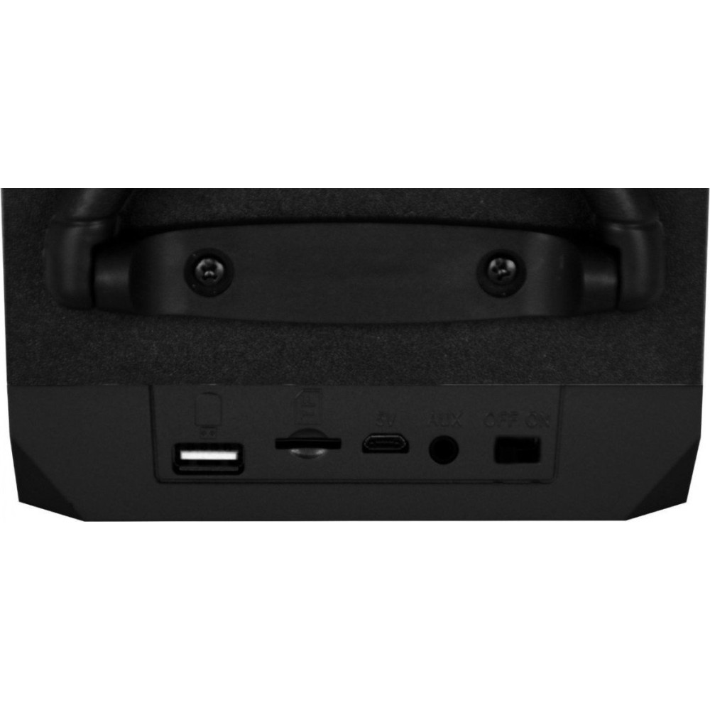 номинальная мощность 6 Вт, воспроизведение с USB/microSD, питание от аккумулятора, BT 4.0, AUX, время работы: 3 ч.