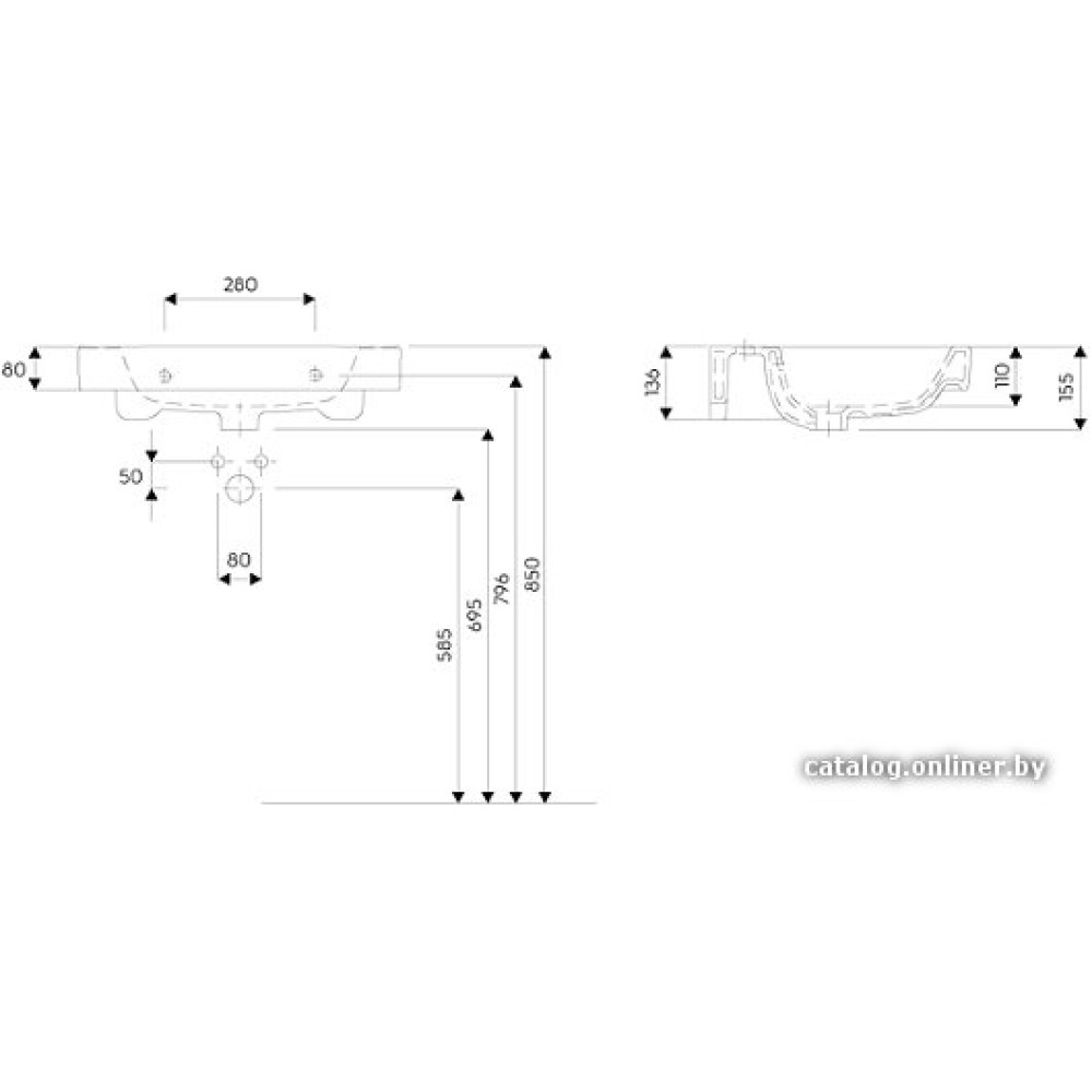 60x48.5 см, с одной чашей, накладной, крепление на мебельный шкаф/на столешницу