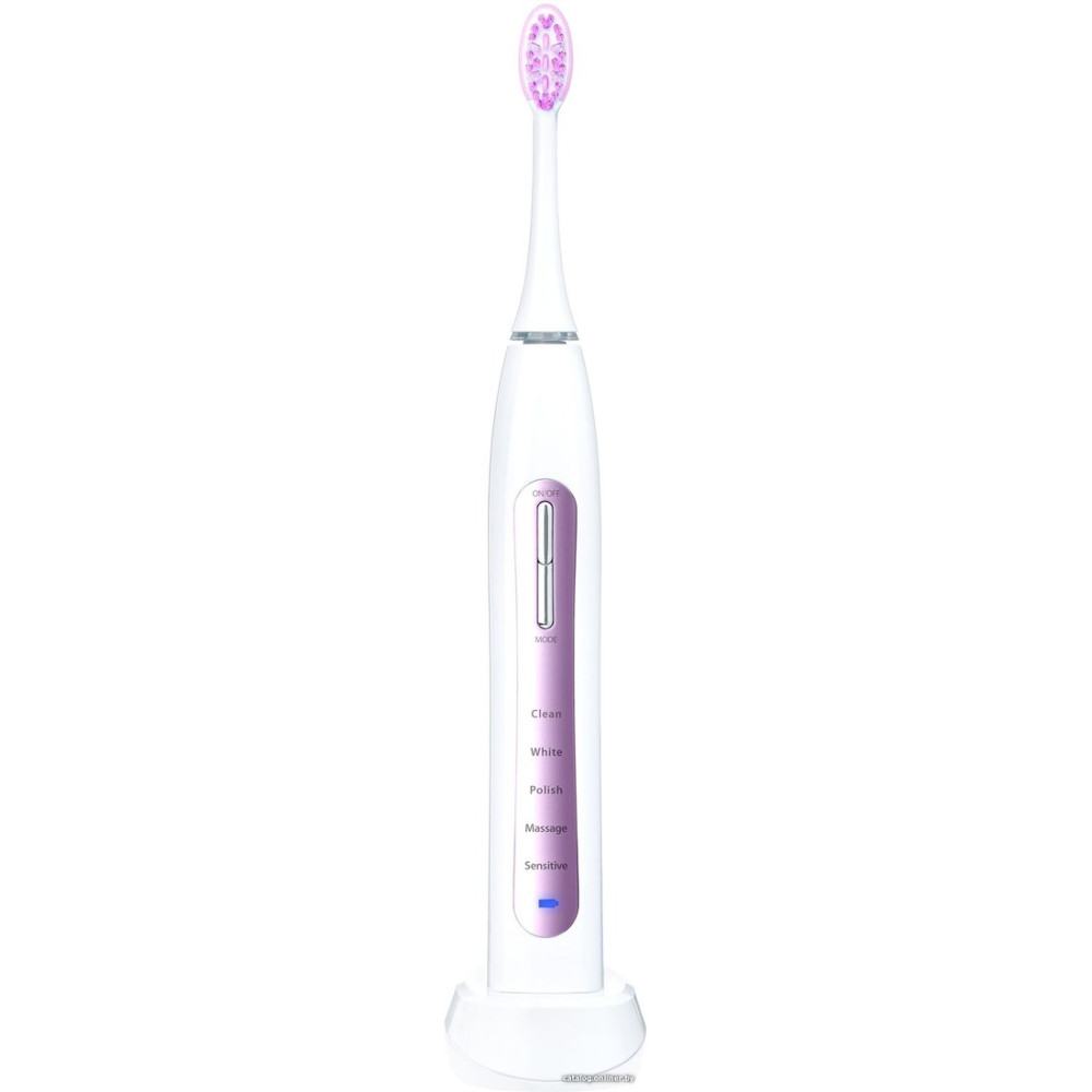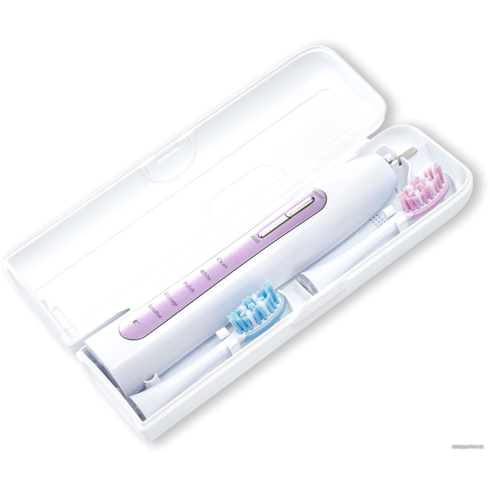 зубная щетка, межзубная чистка/мягкая чистка/отбеливание/массаж/полировка, питание от аккумулятора, движение головки: пульсация, в комплекте: футляр, подставка-зарядная база, количество насадок: 2