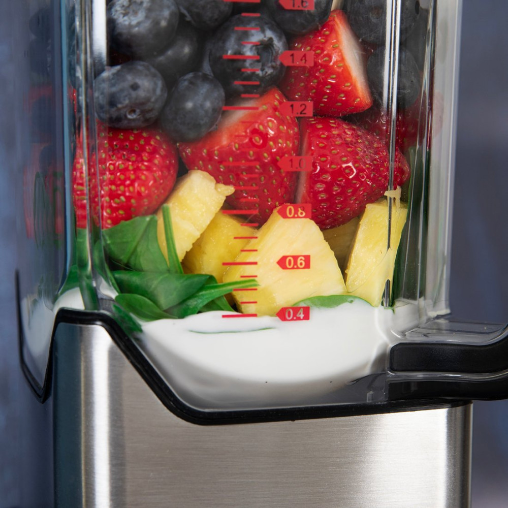 - КомплектацияБлендер (мотор) Банка Tritan без BPA Ножевой блок из нержавеющей стали Крышка Мерный стакан Тампер Руководство с инструкциями по технике безопасности на языке DK/SE/NO/FI/UK/DE/FR.