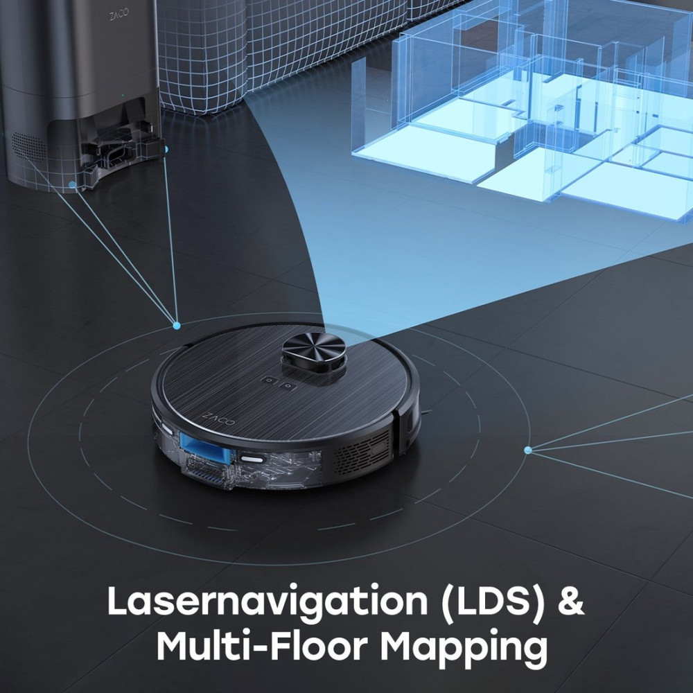 влажная уборка, сила всасывания 3000 Па, пылесборник 0.25 л, с турбощеткой, навигация: контактный бампер, лидар, датчики перепада высоты, план нескольких этажей, база самоочистки