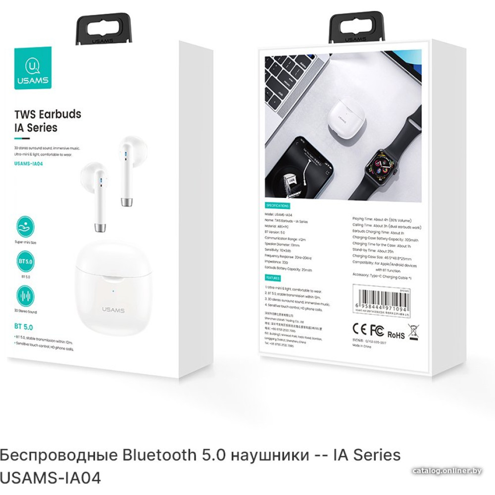 беспроводные наушники с микрофоном, вставные, портативные, полностью беспроводные (TWS), Bluetooth 5.0, 20-20000 Гц, время работы 4 ч, с кейсом 28 ч
