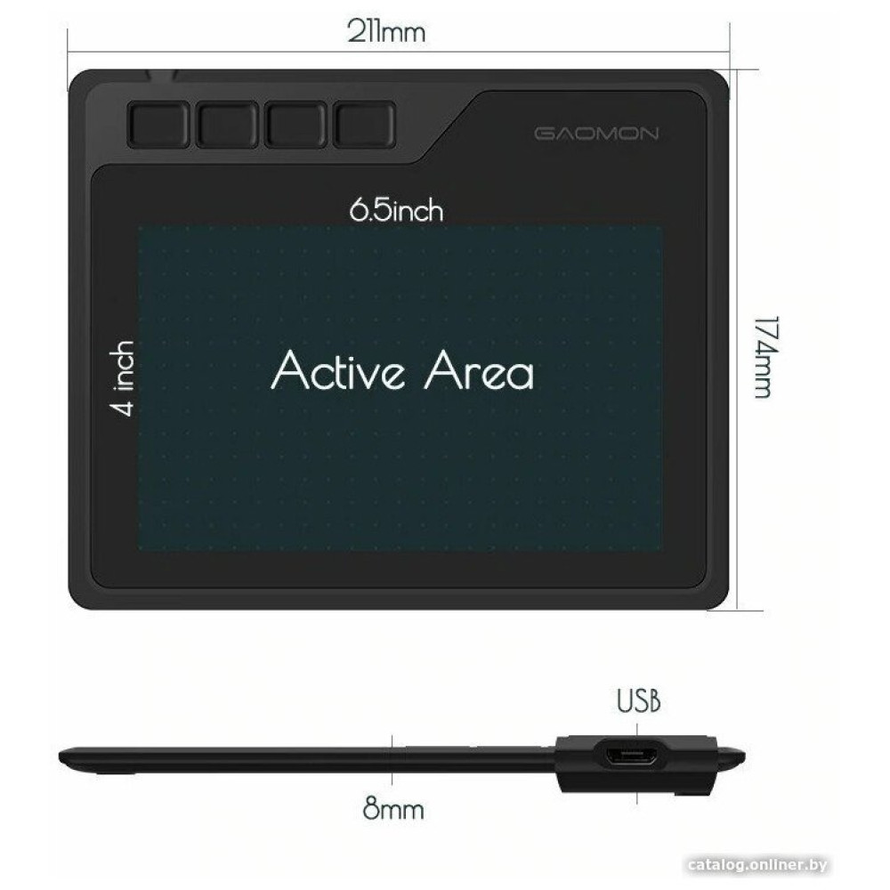 - Комплект поставки - графический планшет - стилус Gaomon AP32 - сменные наконечники (8 шт.) - зажим для стилуса - пенал для стилуса - кабель microUSB - USB Type-A - OTG-адаптер на USB Type-C - OTG-адаптер на microUSB - чехол для адаптеров - документация