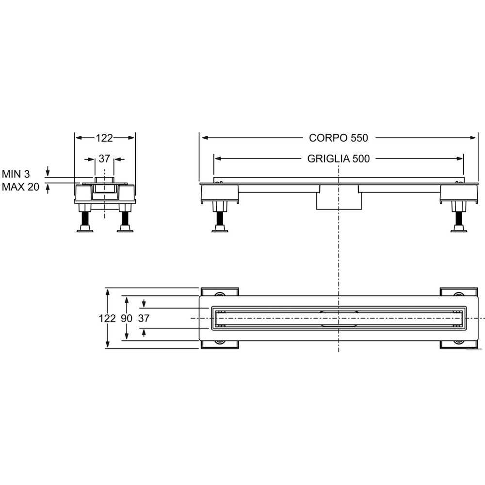 для душа, пластик, длина 550 мм, сливная решетка, цвет крышки: нержавеющая сталь