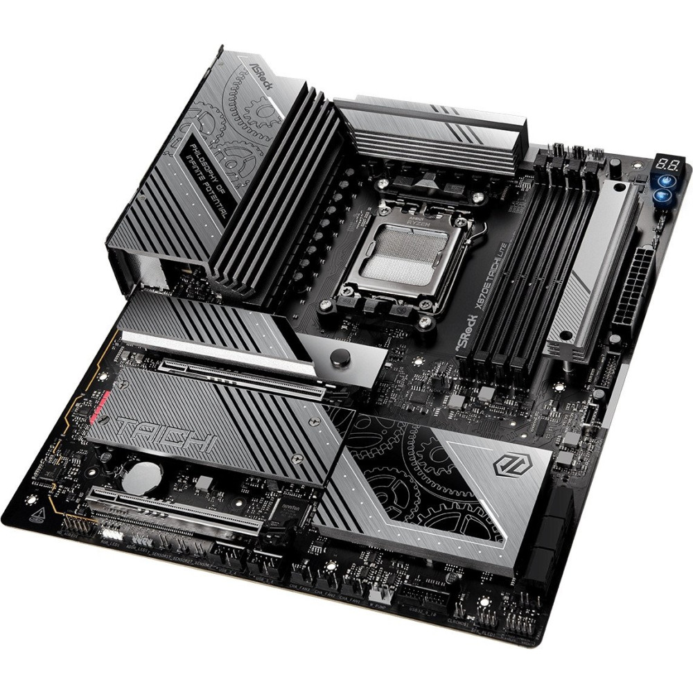 eATX, сокет AMD AM5, чипсет AMD X870E, память 4xDDR5, слоты: 2xPCIe x16 5.0, 4xM.2, 802.11be (Wi-Fi 7)+Bluetooth 5.4, 24+2+1 фаз питания