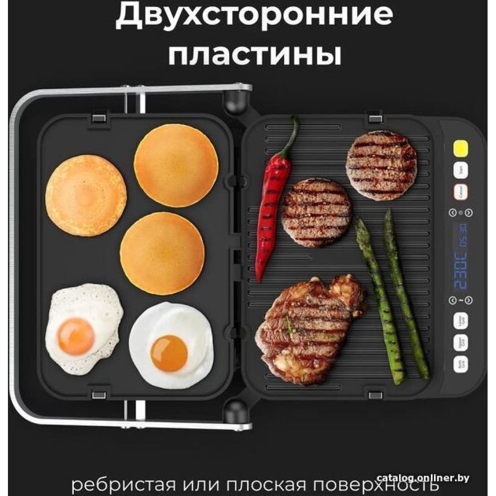 2000 Вт, универсальный, двухсторонний (гриль-пресс), габариты 338x355 мм, рабочая поверхность 320x220 мм