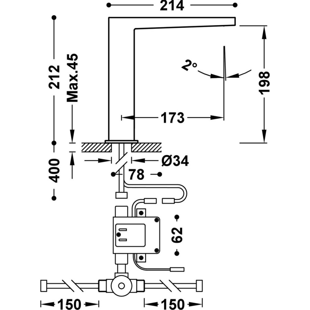 бесконтактный кран для умывальника, монтаж на раковину или столешницу