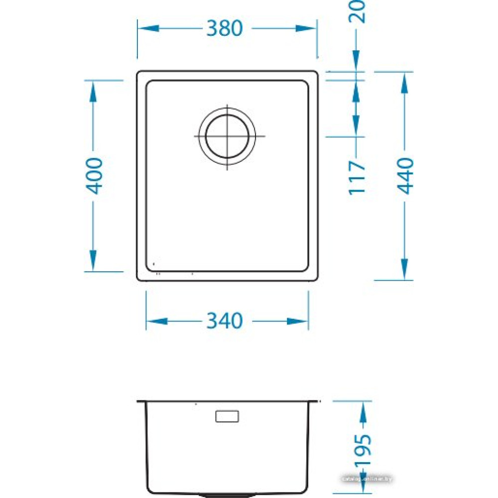 врезная под столешницу, нержавеющая сталь, фактура: сатин, размеры: 38x44 см, глубина чаши: 19.5 см, в шкаф шириной от 40 см