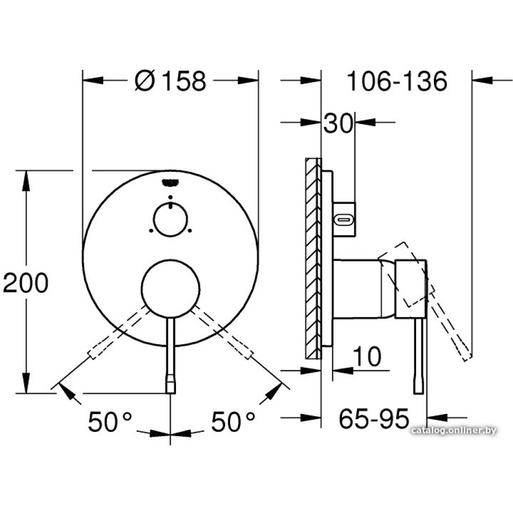 однорычажный смеситель для душа, монтаж скрытый