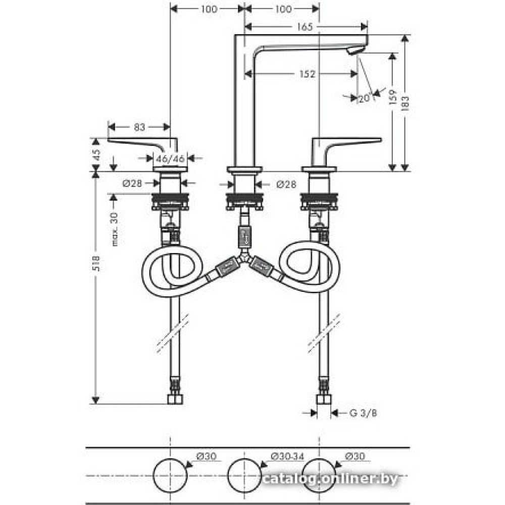 двухвентильный смеситель для умывальника, монтаж на раковину или столешницу