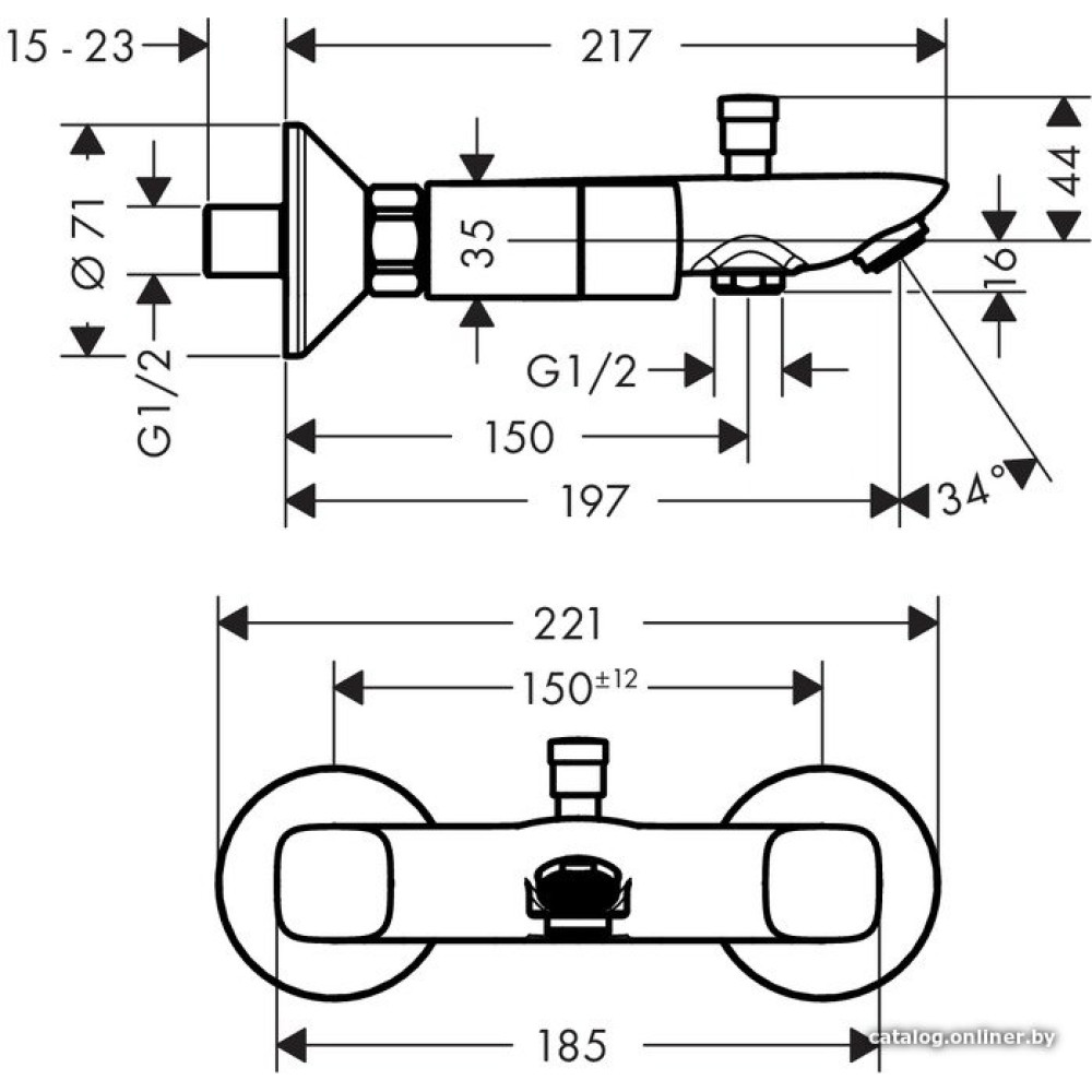двухвентильный смеситель для ванны и душа, монтаж на стену