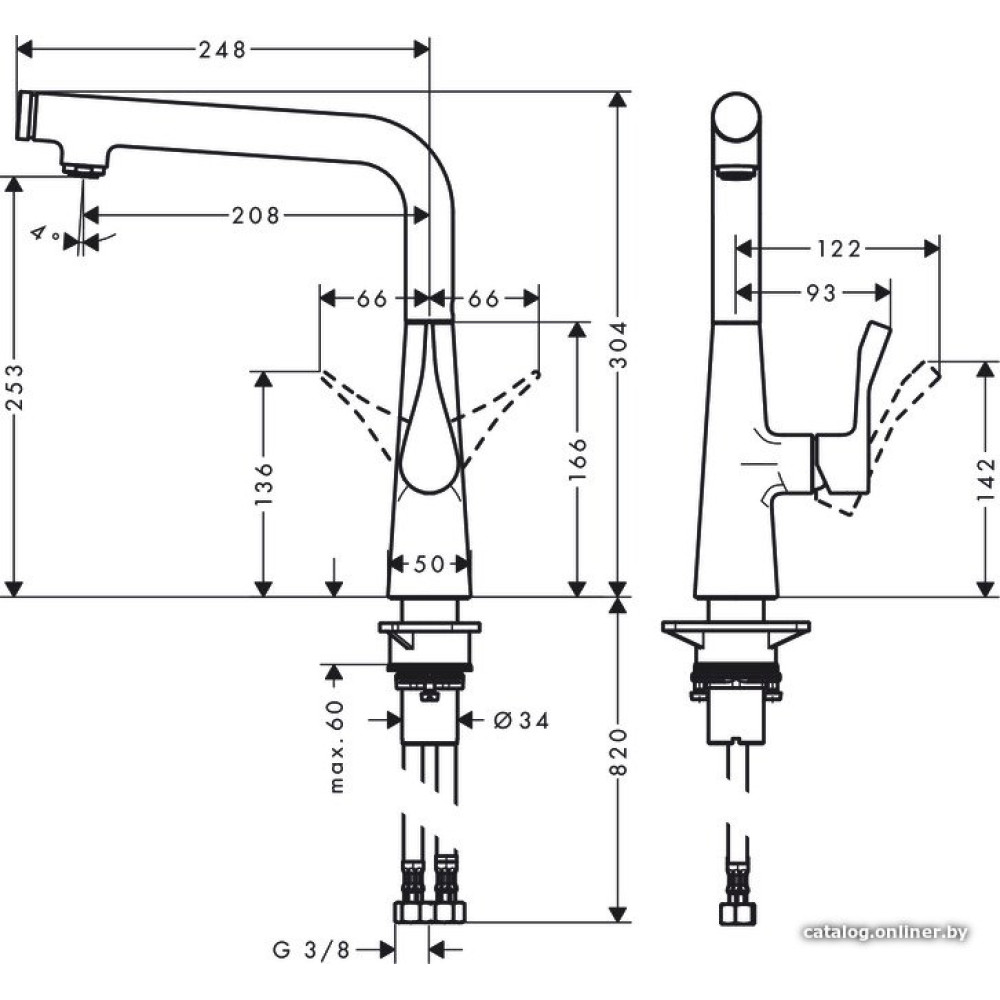 • Высота излива253 мм