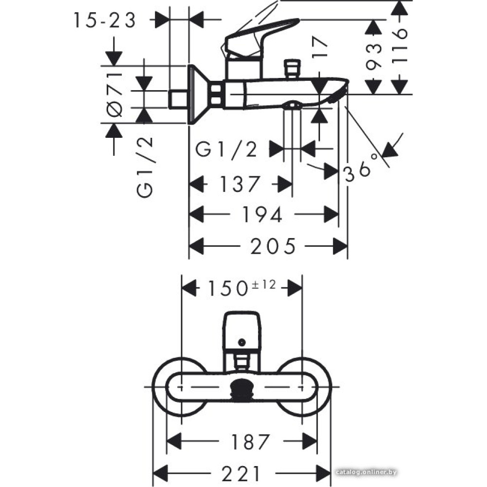 однорычажный смеситель для ванны и душа, монтаж на стену