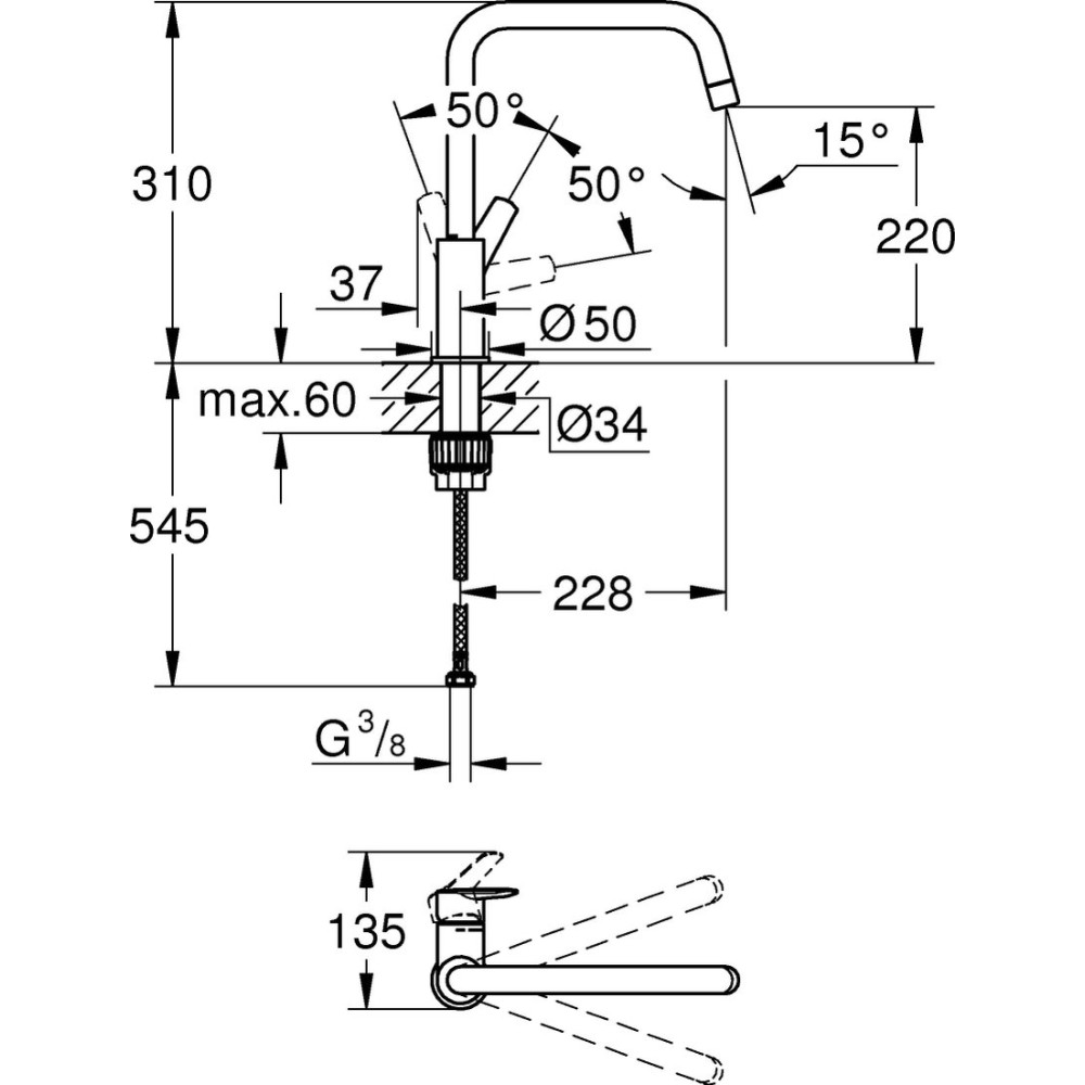 однорычажный смеситель для кухни, монтаж на раковину или столешницу