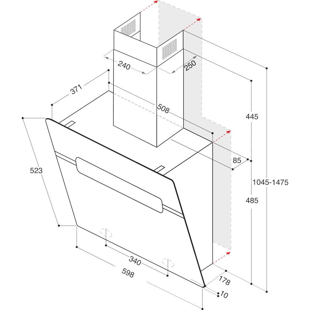 конструкция наклонная, монтаж настенный, ширина 59.8 см, управление сенсорное, производительность вытяжки 580 м³/ч, цвет черный