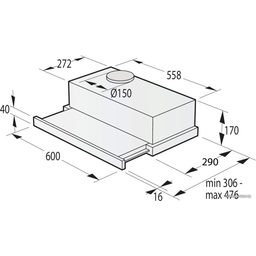 - Диаметр воздуховода150 мм