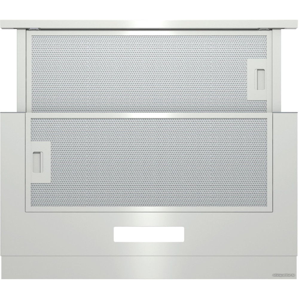 конструкция телескопическая, монтаж для встраивания, ширина 60 см, управление механическое/кнопочное, производительность вытяжки 350 м³/ч, цвет нержавеющая сталь