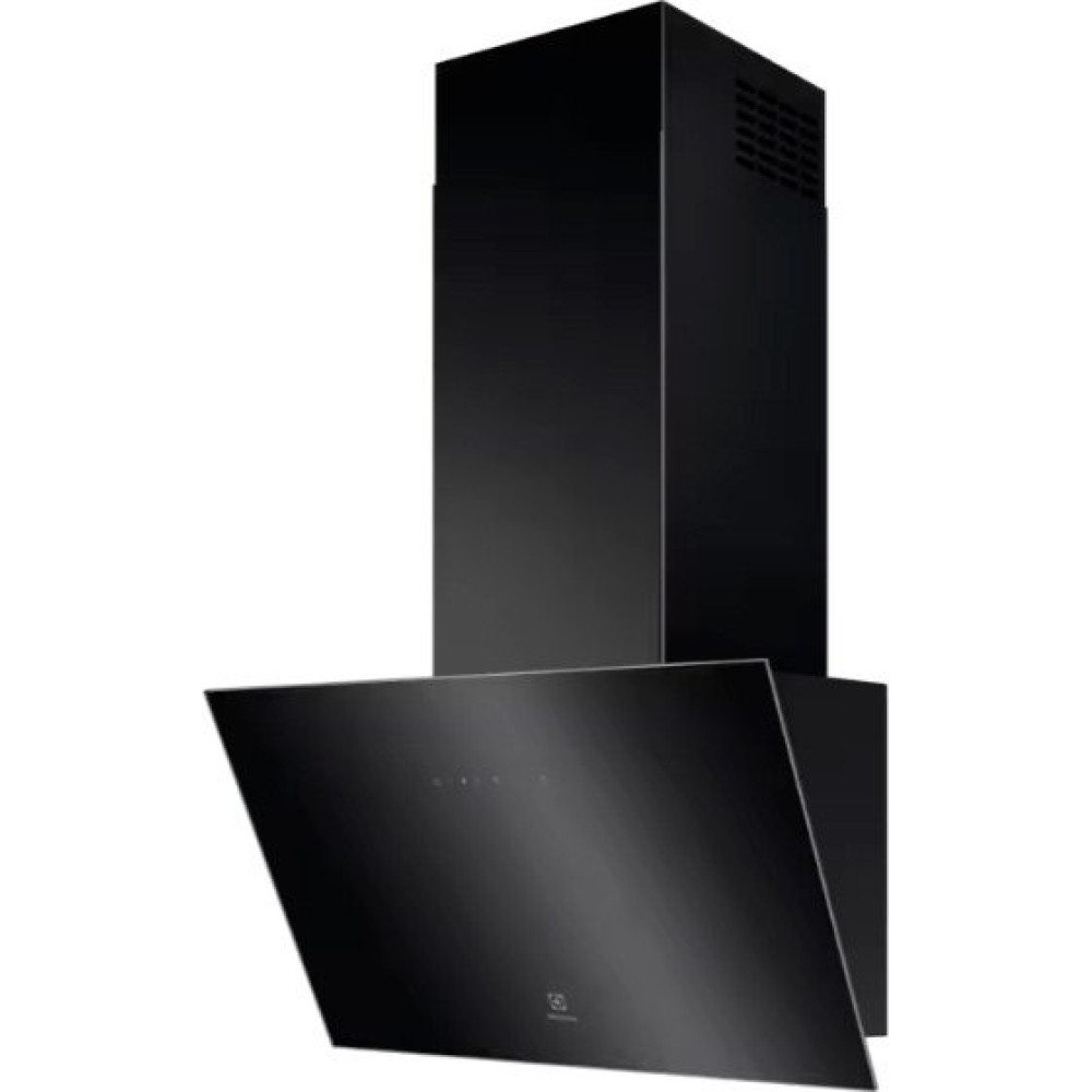 конструкция наклонная, монтаж настенный, ширина 59.8 см, управление сенсорное, производительность вытяжки 465 м³/ч, цвет черный