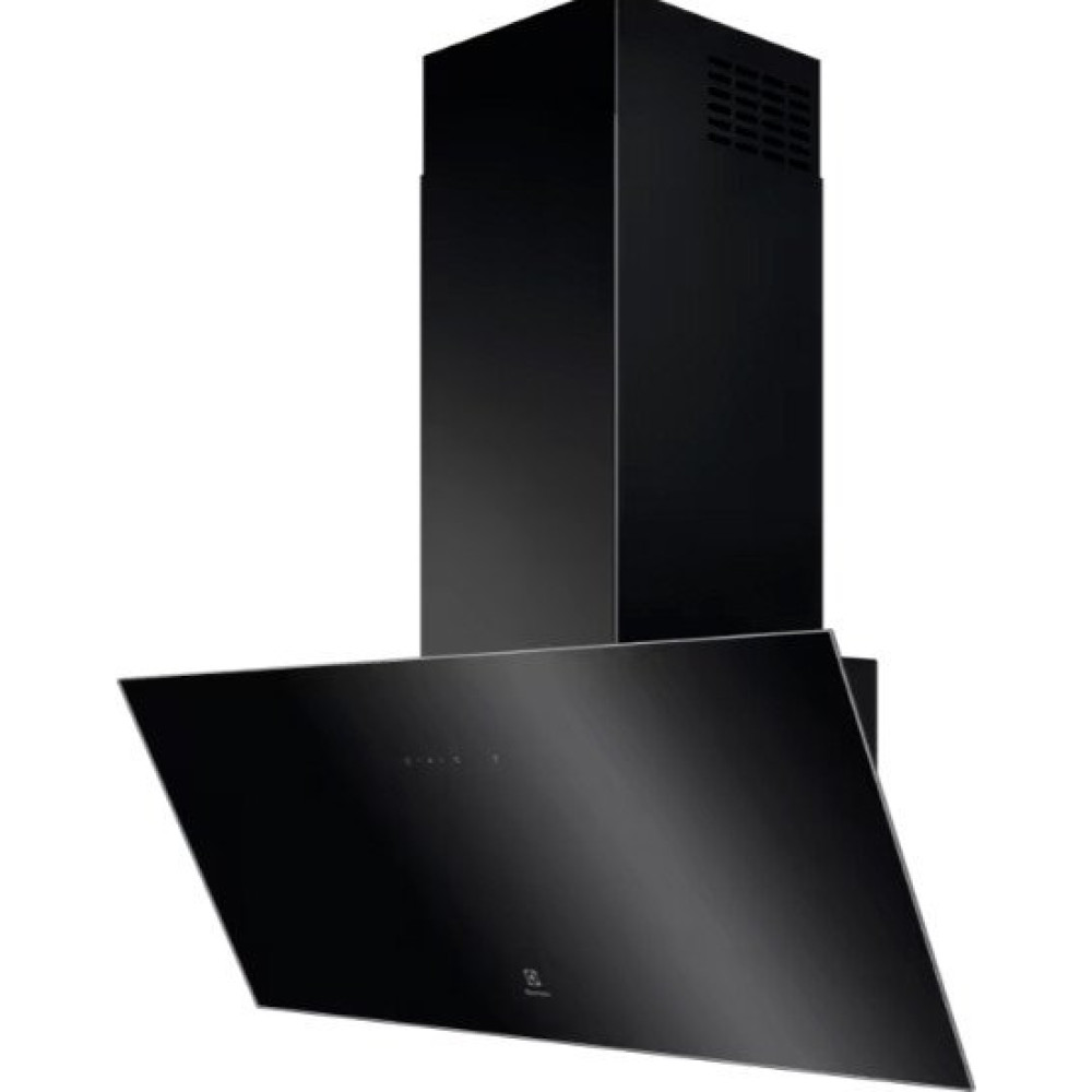 конструкция наклонная, монтаж настенный, ширина 89.8 см, управление сенсорное, производительность вытяжки 465 м³/ч, цвет черный