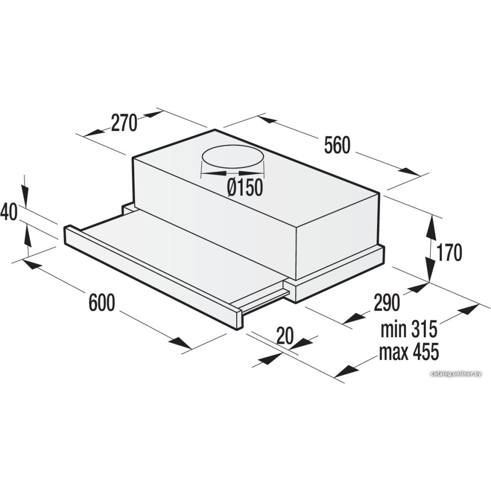 - Диаметр воздуховода150 мм