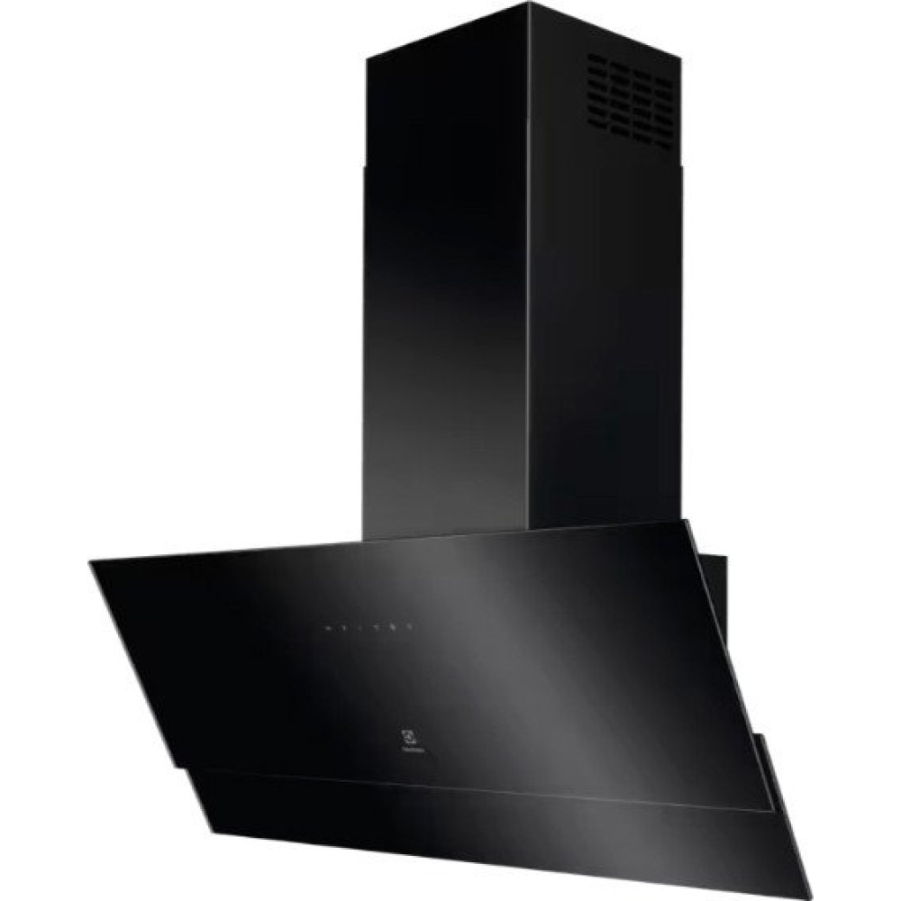 конструкция наклонная, монтаж настенный, ширина 89.6 см, управление сенсорное, производительность вытяжки 575 м³/ч, цвет черный