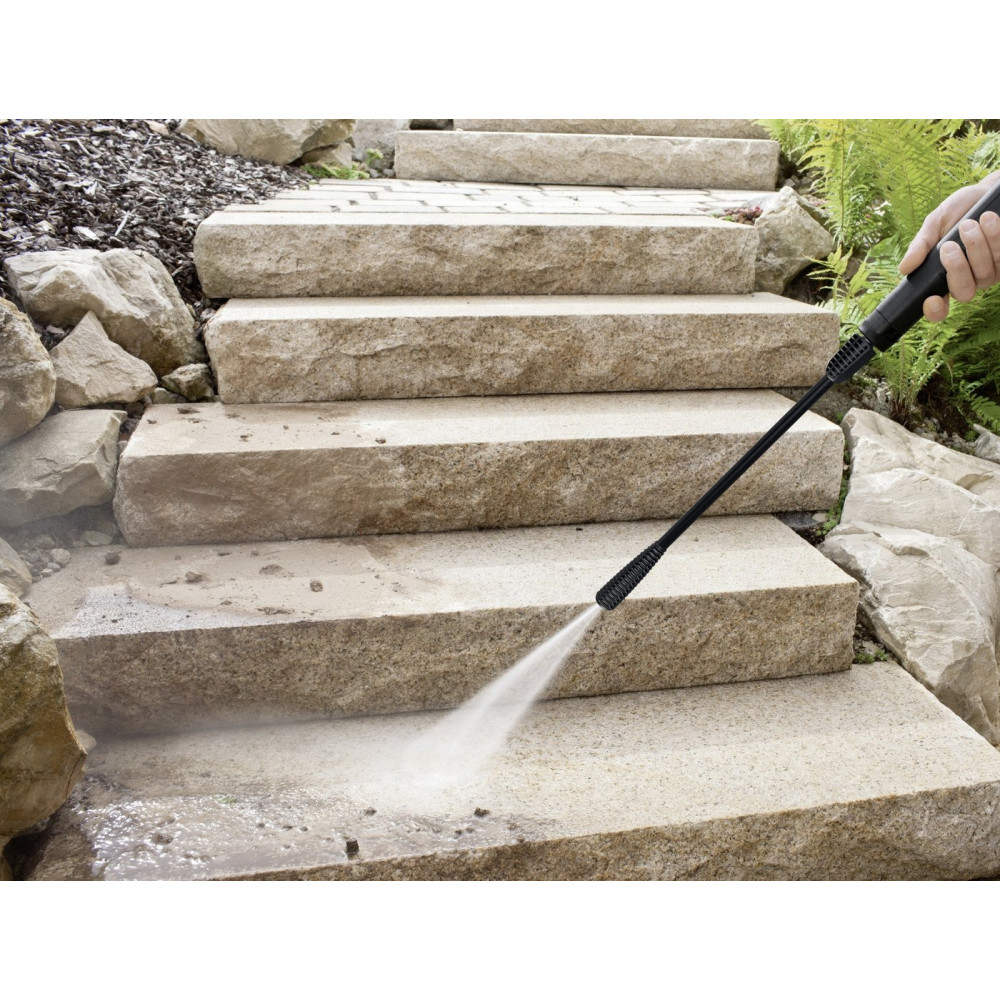 • Комплектация - Пистолет высокого давления: ПистолетG 120 Q; - 1-позиционная струйная трубка; - Шланг высокого давления: 3 м; - Адаптер подключения к садовому шлангу 3/4".