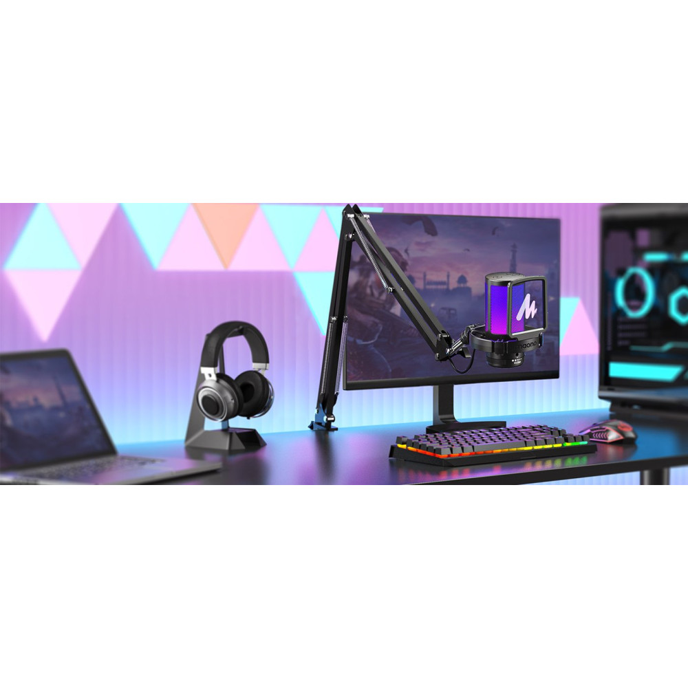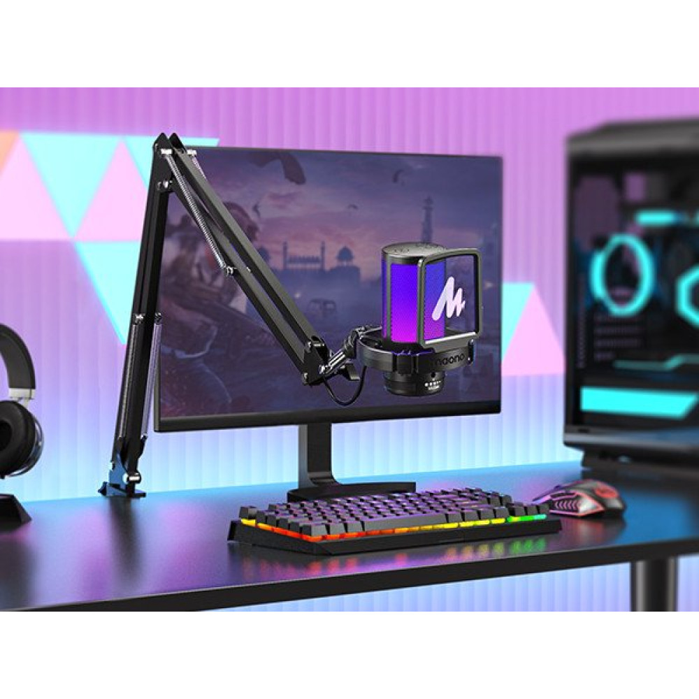 - Описание ❗️Текст описания составлен при помощи искусственного интеллекта. ✅ Микрофон Maono DGM20S - идеальный выбор для стриминга и подкастов. С частотным диапазоном 50-20 000 Гц и разрядностью 24 бит/48 кГц, он обеспечивает качественное звучание. ✅ Поп-фильтр и антивибрационный держатель помогут избежать нежелательных шумов и вибраций, обеспечивая чистый звук. ✅ Регулировка чувствительности и управление подсветкой делают использование микрофона удобным и настраиваемым под индивидуальные предпочтения. ✅ С кардиоидной направленностью и соотношением сигнал/шум 73 дБ, микрофон обеспечивает четкое и чистое звучание голоса. ✅ Стойка-пантограф и настольное исполнение делают его удобным в использовании, а разъемы USB Type-A и USB Type-C обеспечивают универсальную совместимость.
