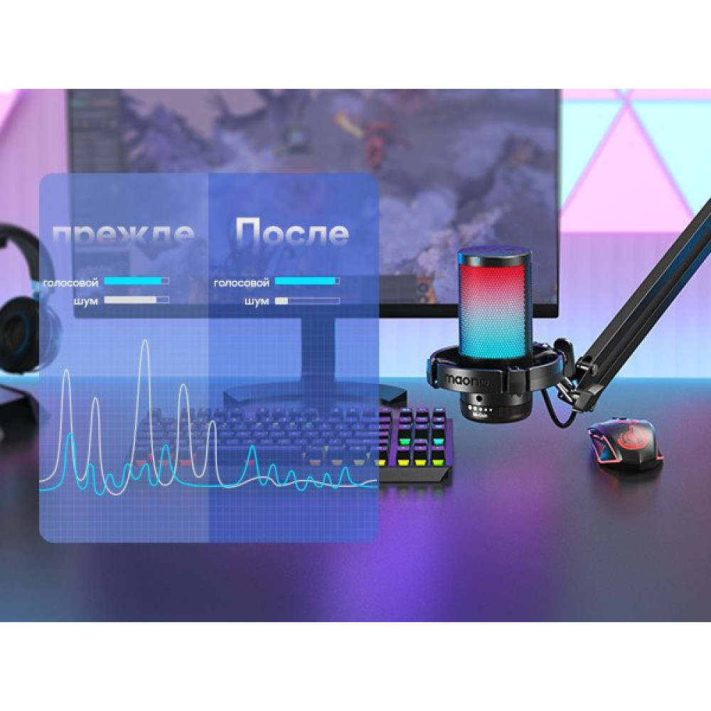 - Описание❗️Текст описания составлен при помощи искусственного интеллекта. ✅ Микрофон Maono DGM20S - идеальный выбор для стриминга и подкастов. С частотным диапазоном 50-20 000 Гц и разрядностью 24 бит/48 кГц, он обеспечивает качественное звучание. ✅ Поп-фильтр и антивибрационный держатель помогут избежать нежелательных шумов и вибраций, обеспечивая чистый звук. ✅ Регулировка чувствительности и управление подсветкой делают использование микрофона удобным и настраиваемым под индивидуальные предпочтения. ✅ С кардиоидной направленностью и соотношением сигнал/шум 73 дБ, микрофон обеспечивает четкое и чистое звучание голоса. ✅ Стойка-пантограф и настольное исполнение делают его удобным в использовании, а разъемы USB Type-A и USB Type-C обеспечивают универсальную совместимость.