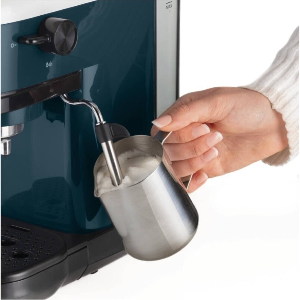 1300 Вт, корпус металл/пластик, капучинатор ручной, используемый кофе: молотый/капсулы, цвет белый/зеленый