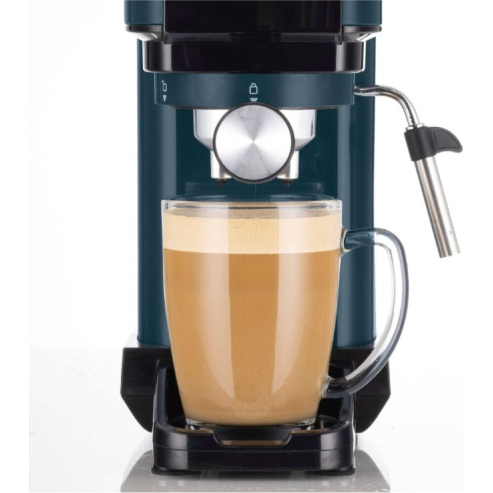1300 Вт, корпус металл/пластик, капучинатор ручной, используемый кофе: молотый/капсулы, цвет голубой/зеленый