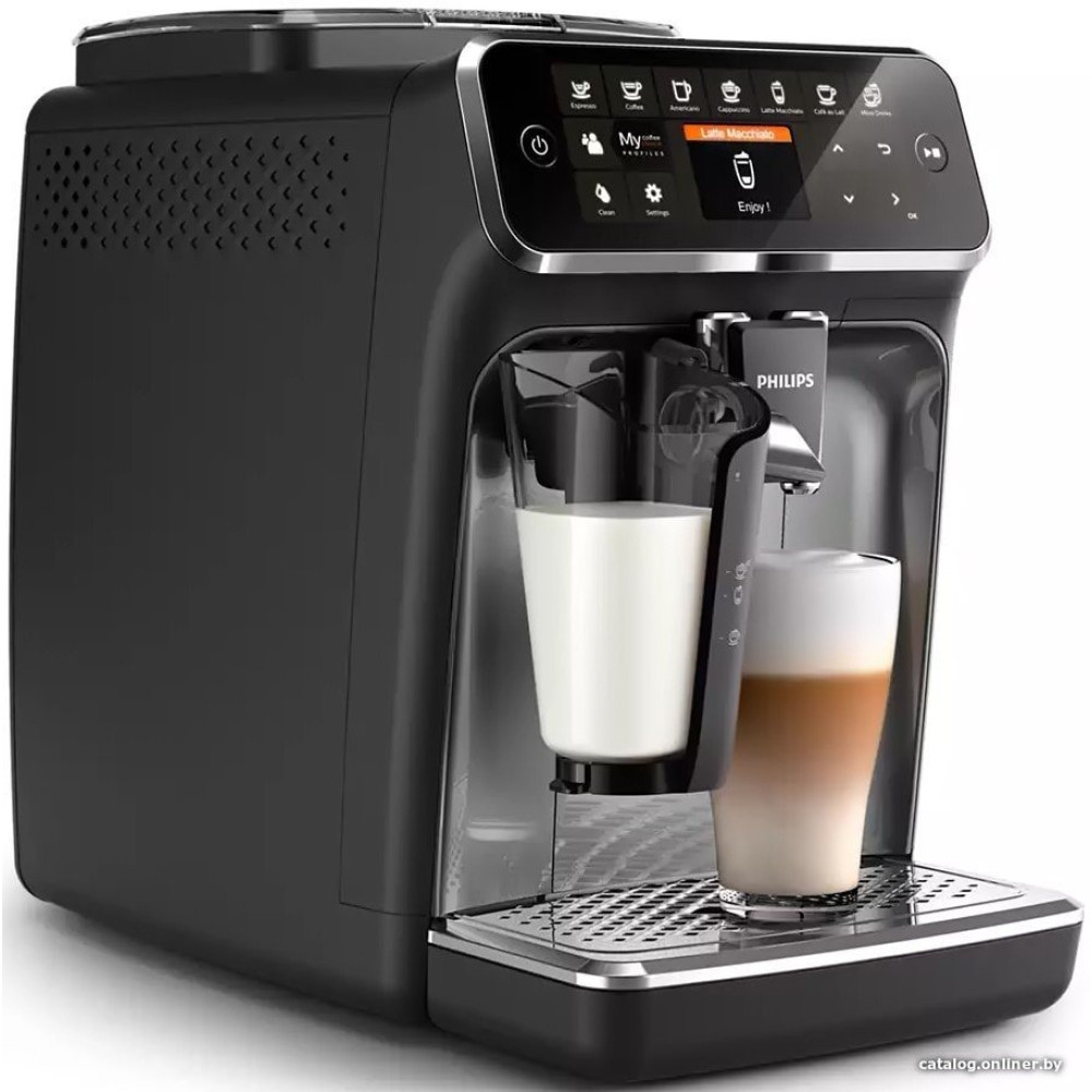 - Программы приготовления эспрессо, лунго, американо, капучино, латте макиато, ристретто, латте, горячее молоко