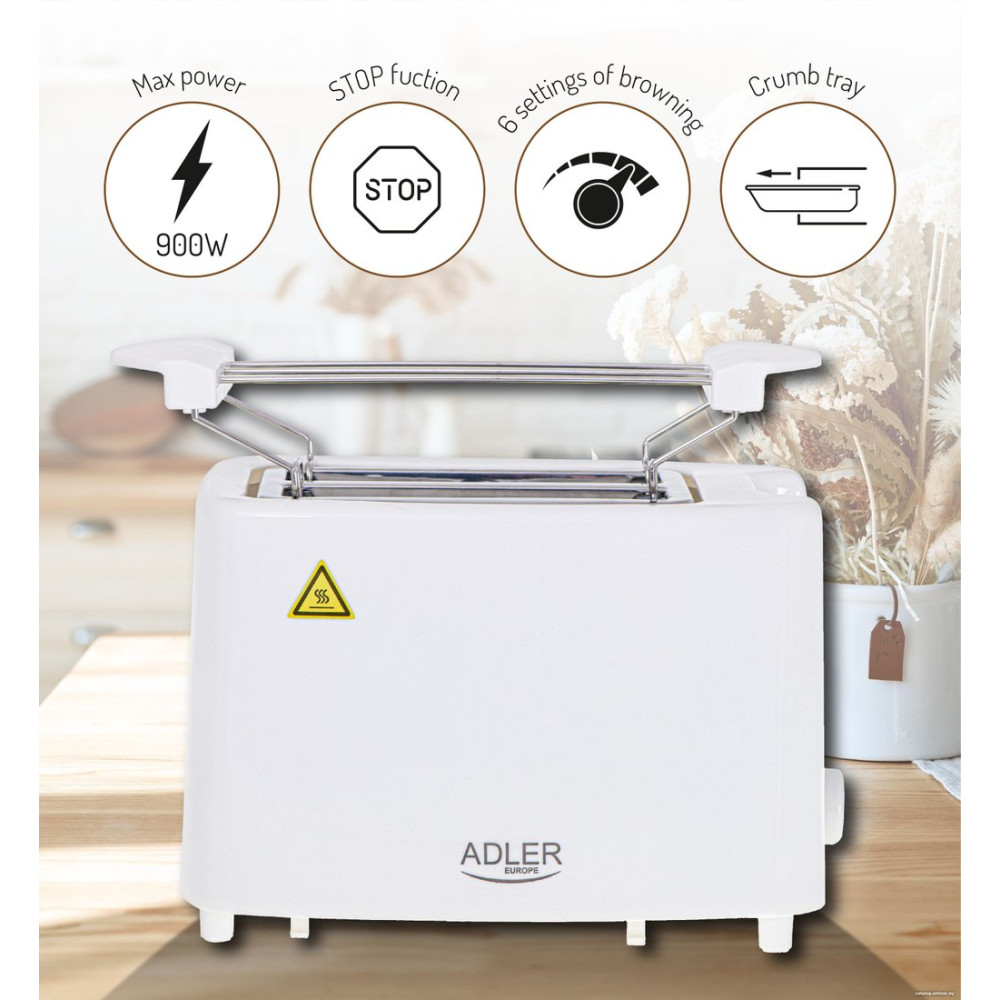 900 Вт, количество тостов: 2, корпус: пластик, решетка для подогрева булочек, 6 степеней обжаривания, цвет белый