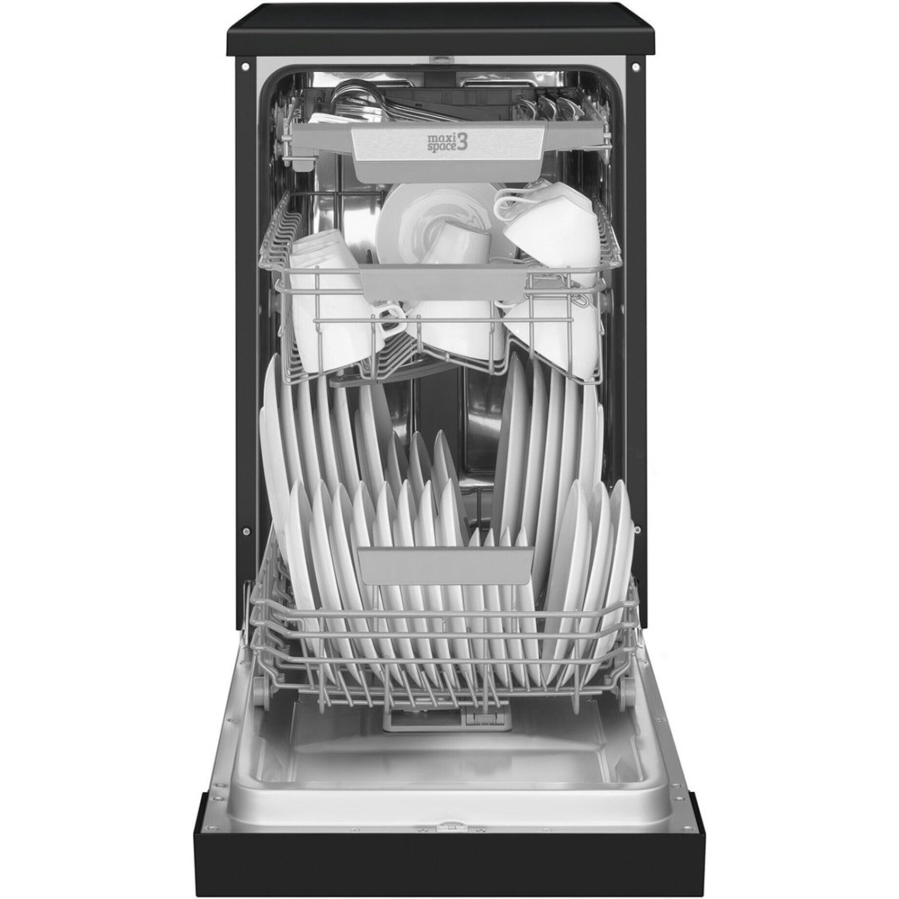 загрузка на 10 комплектов посуды, электронное управление, 8 программ, черный цвет, сушка: стандартная (конденсация)/с открыванием дверцы, индикация на полу: нет