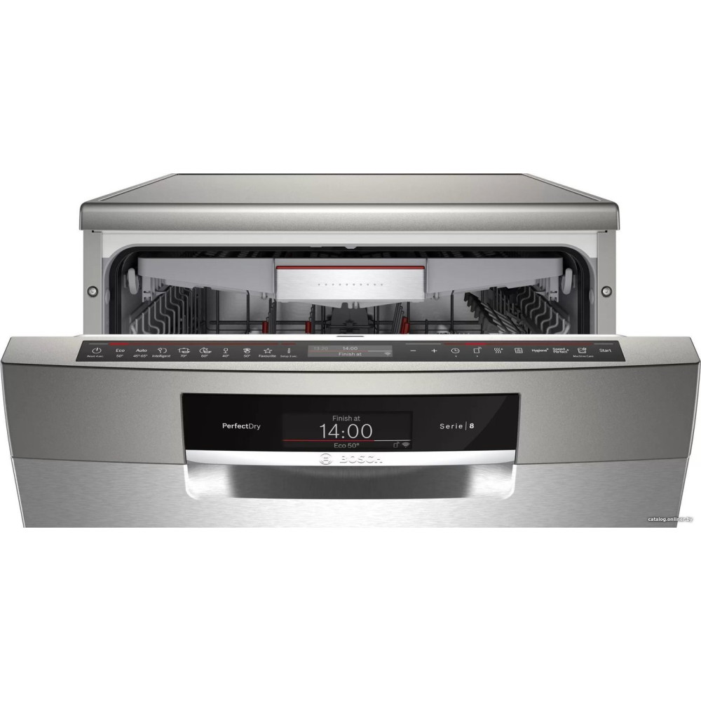 загрузка на 14 комплектов посуды, сенсорное управление, 8 программ, серебристый цвет, сушка: с теплообменником/Zeolite, индикация на полу: нет